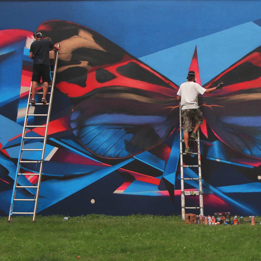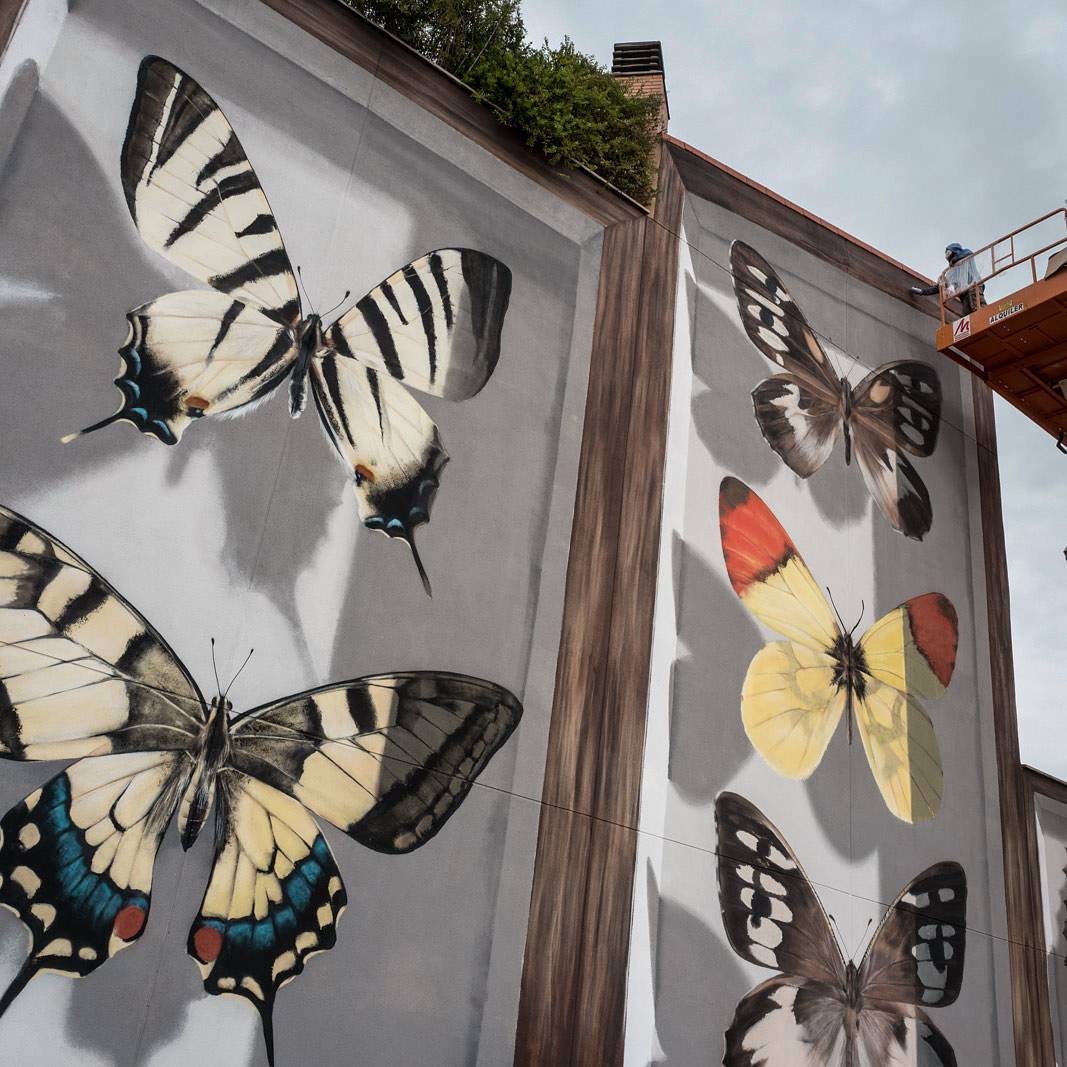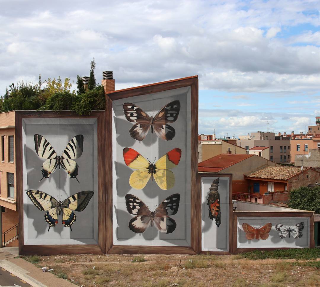 هنرمند مستقر در فرانسه Mantra، مجموعهاي از نقاشيهاي بسيار واقع گرايانه را رونمايي کرد که نماهاي ساختمانهاي تجاري و مسکوني را به نمايشگاههاي بزرگ پروانهها در کشورهاي مختلف مانند اسپانيا، اتريش، فرانسه، و بوگوتا تبديل کرد.