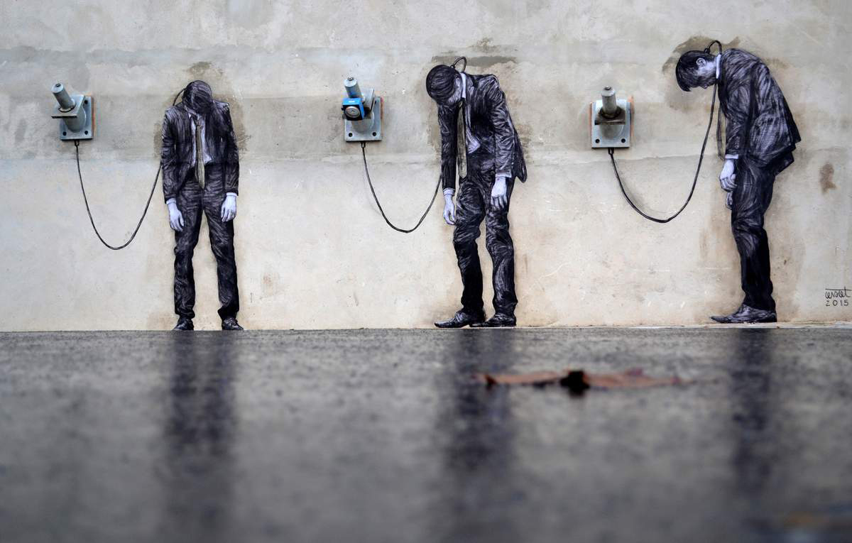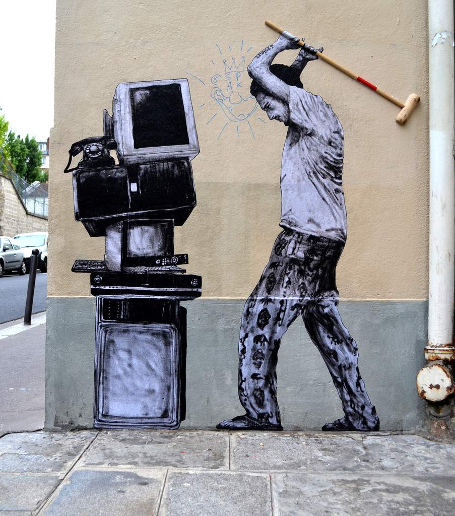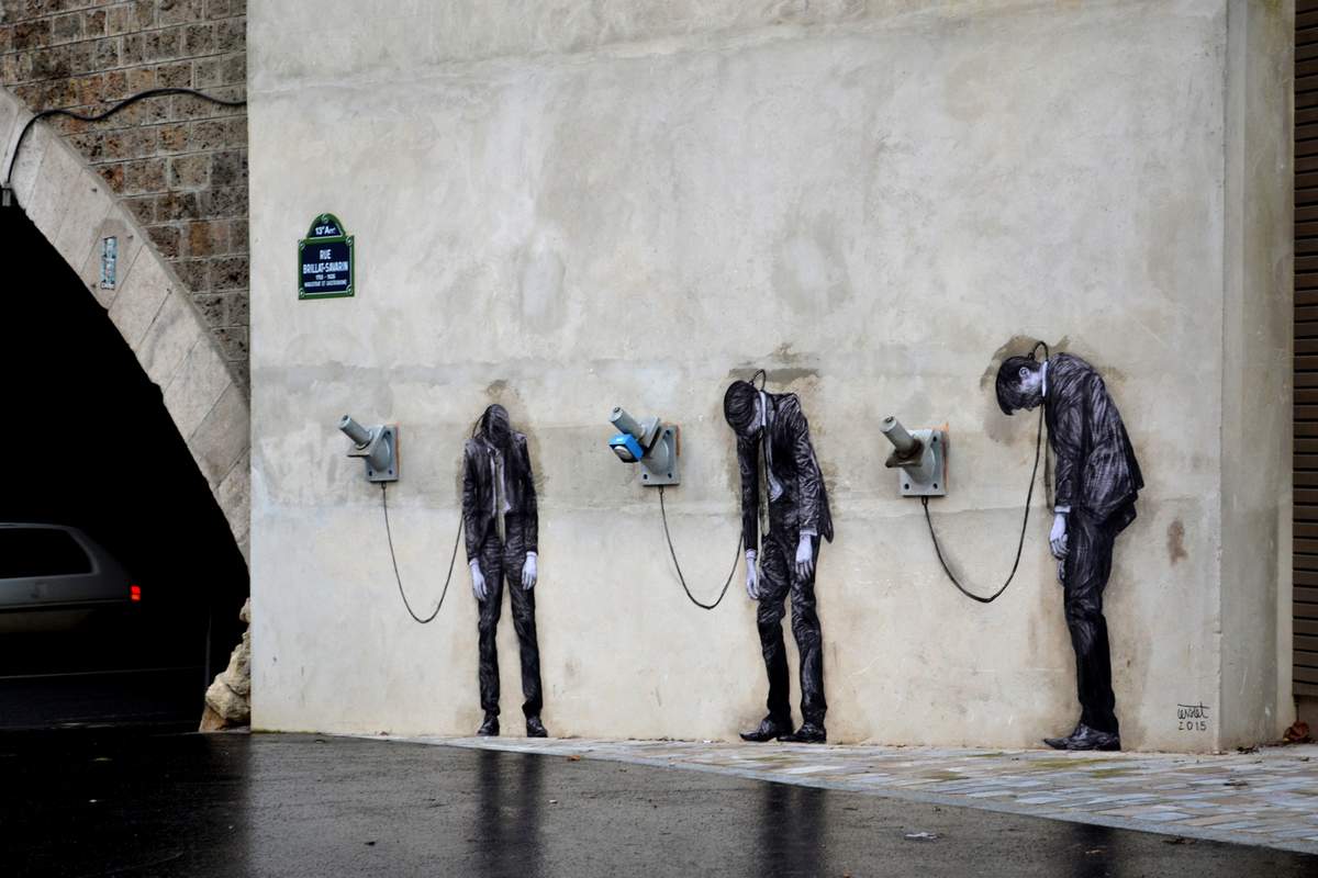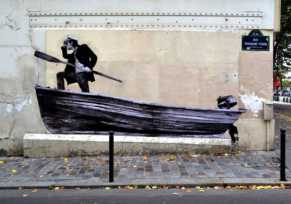 هنرمند فرانسوي چارلز لوال، معروف به Levalet، با استفاده از عناصر بصري خيابان هاي پاريس آثار هنري خود را بر سطح شهر خلق ميکند.
