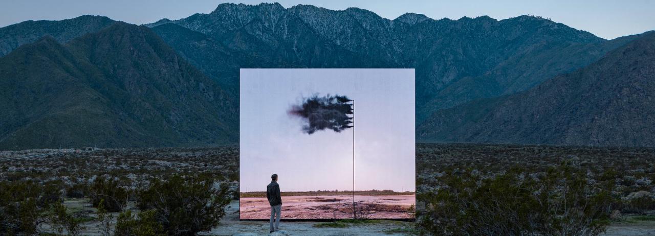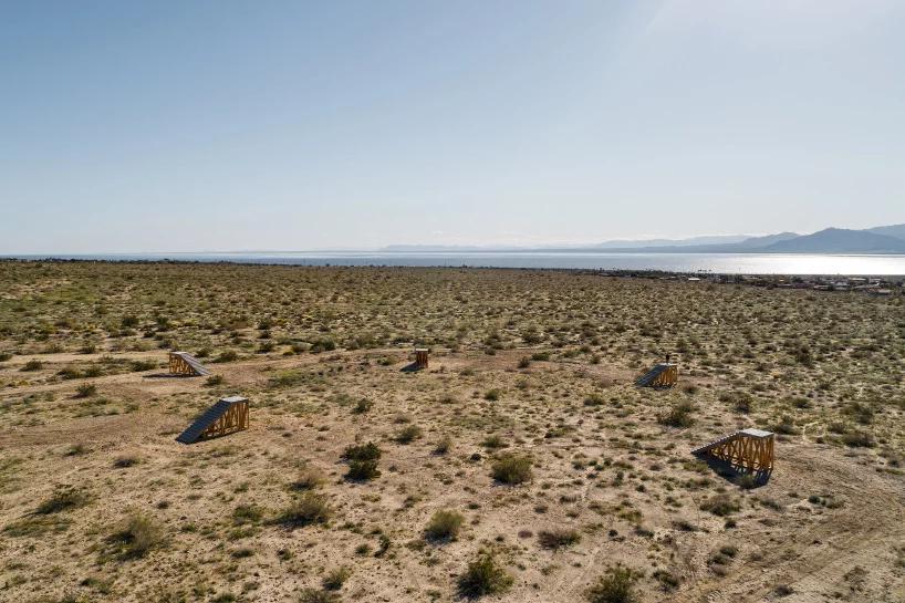 چيدمانهاي هنري پروژهي Desert X شامل راهپلههايي با کارکرد ساعتهاي آفتابي، آثار هنري واقعيت افزوده و پرچمي از جنس دود است.