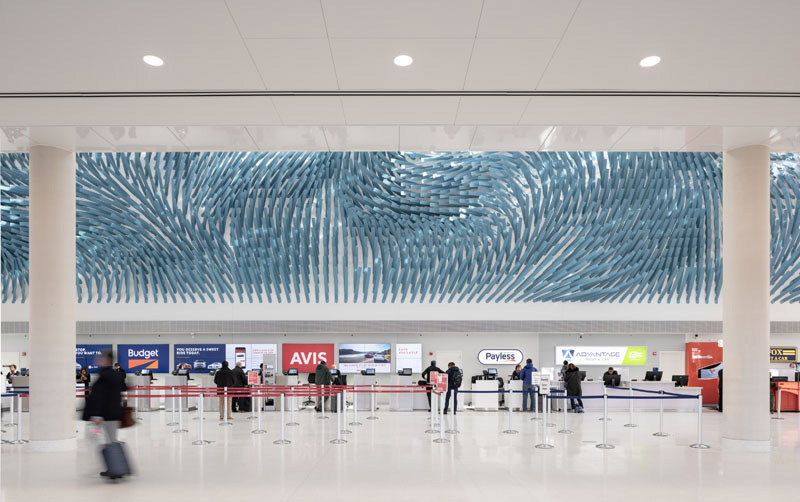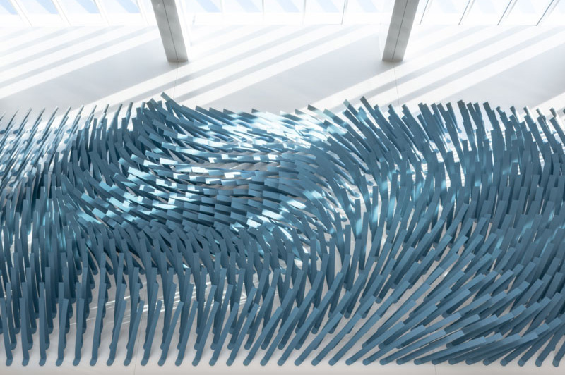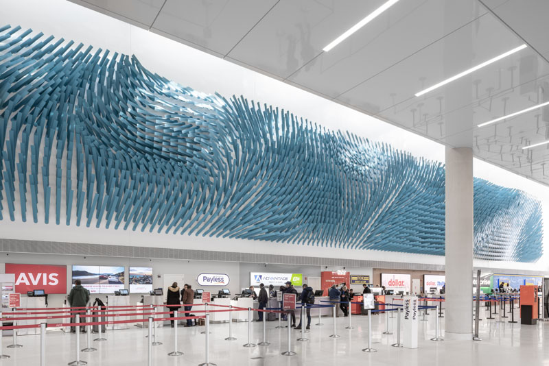 هنرمند فعال در زمينه ي هنر محيطي Rob Ley با هدف نمايش جريان ملايم وزش باد، چيدماني را در فرودگاه "اوهار" شيکاگو خلق کرده است.