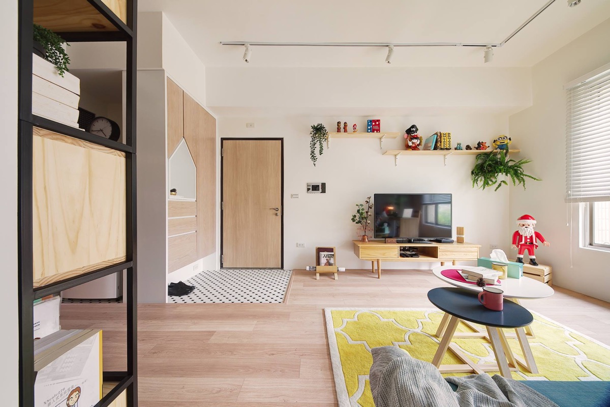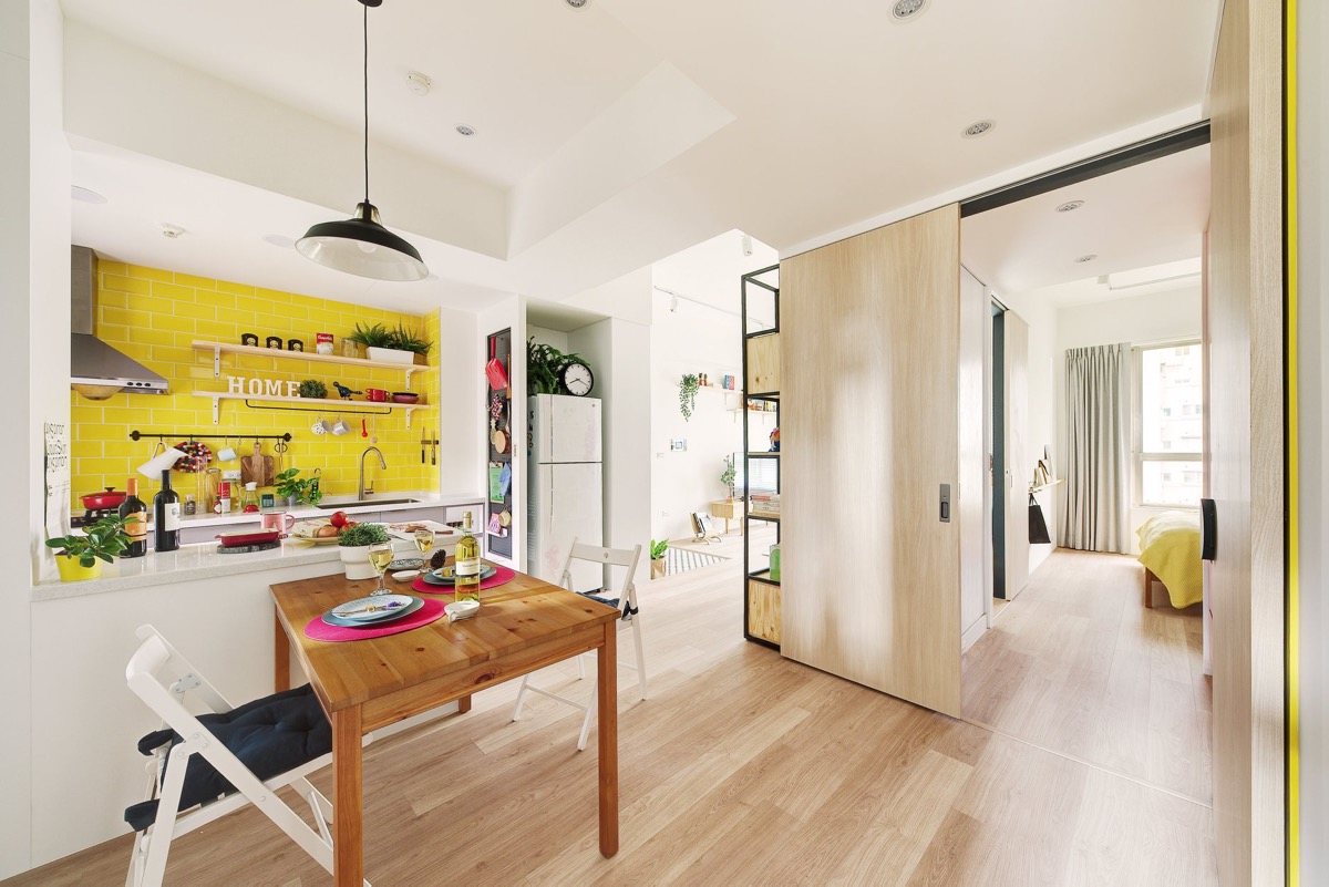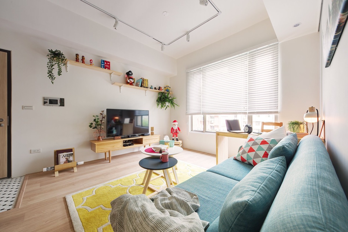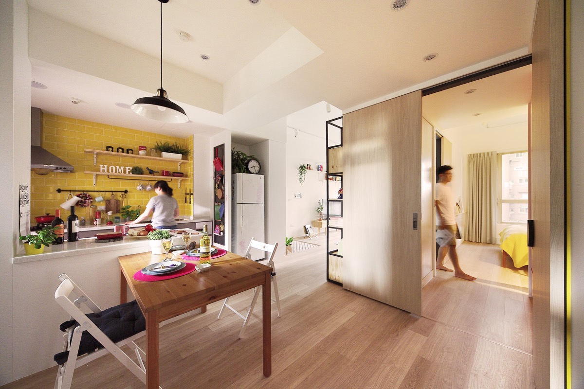 طراحي دکوراسيون اين خانه رنگارنگ در متراژ ۶۲٫۸ متر مربع که خانه اي ۱۰ ساله و متعلق به زن و شوهري بدون فرزند است در تايوان انجام شده است.