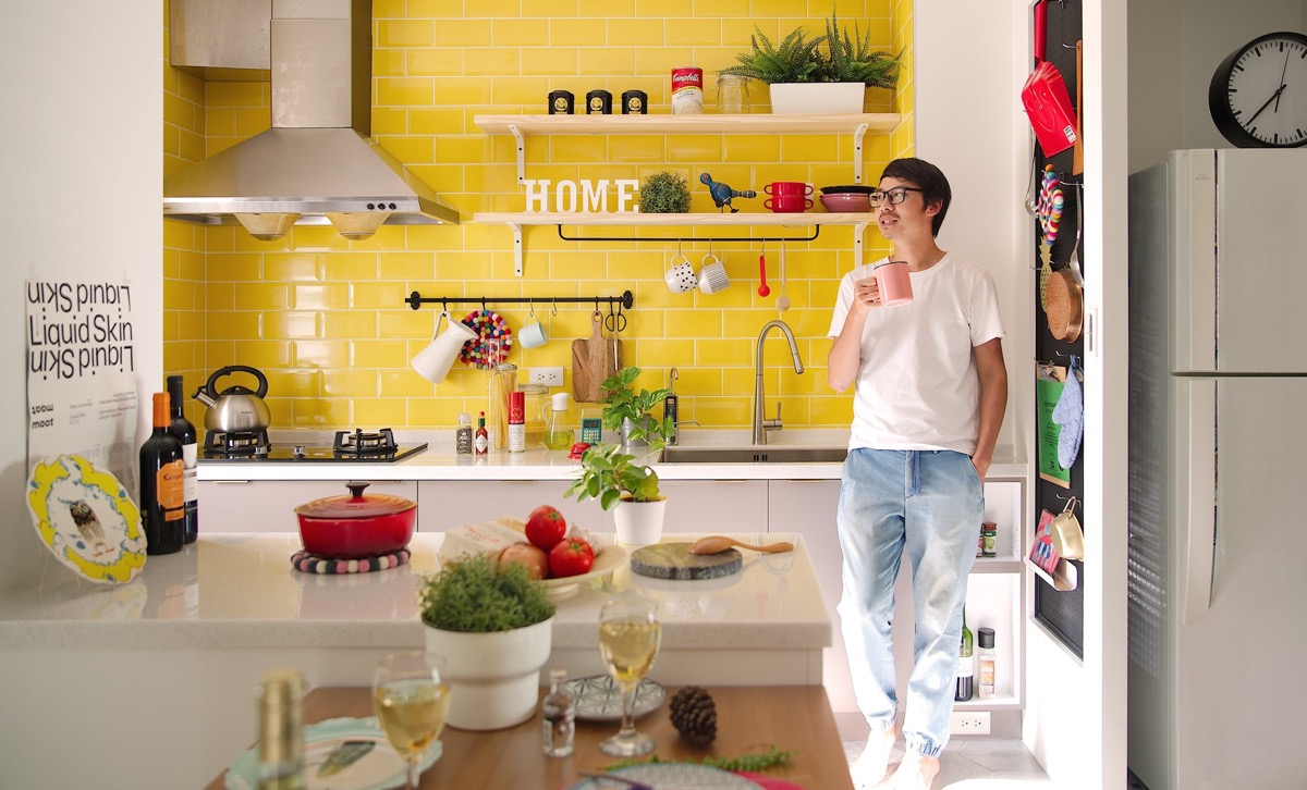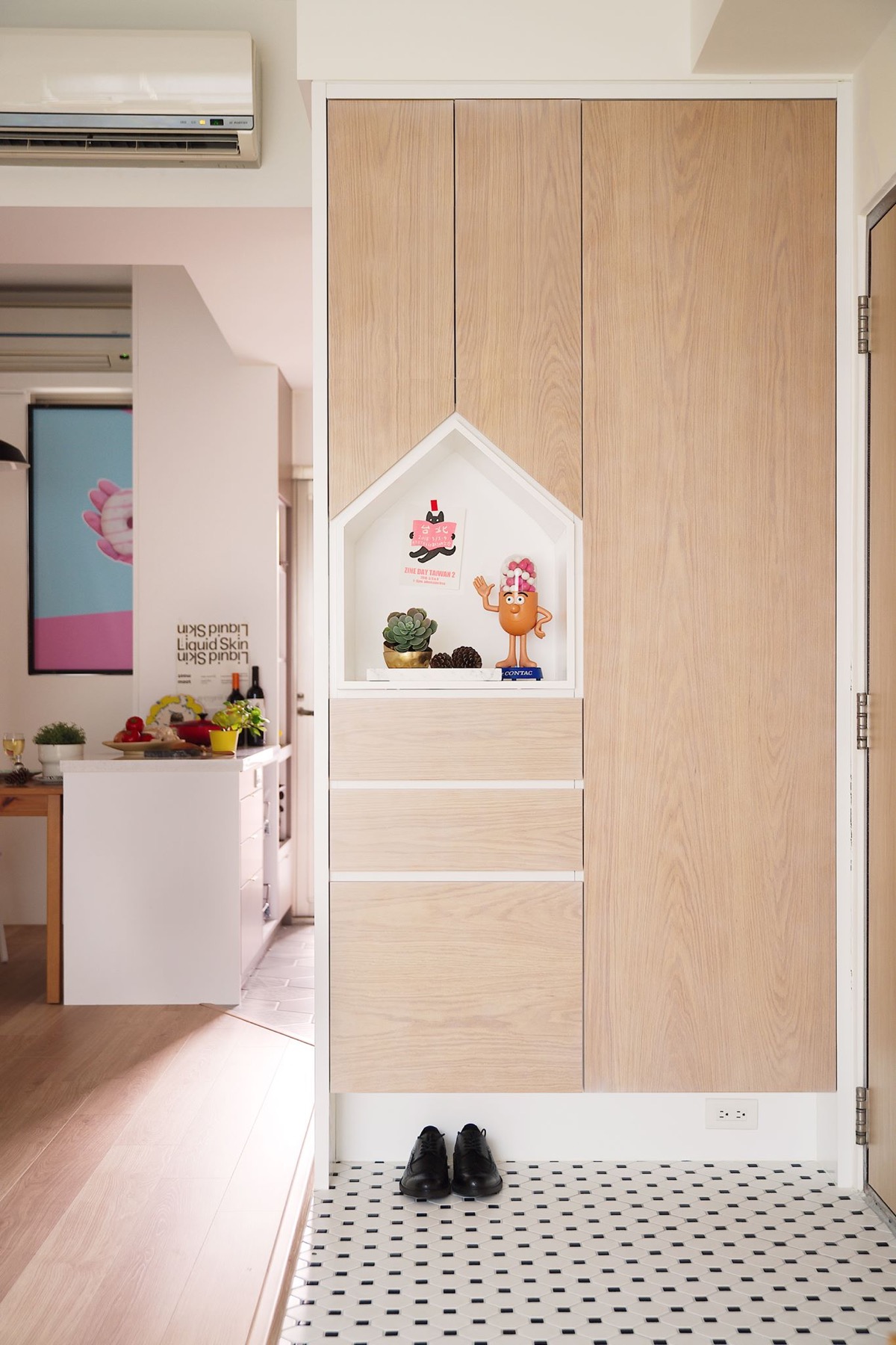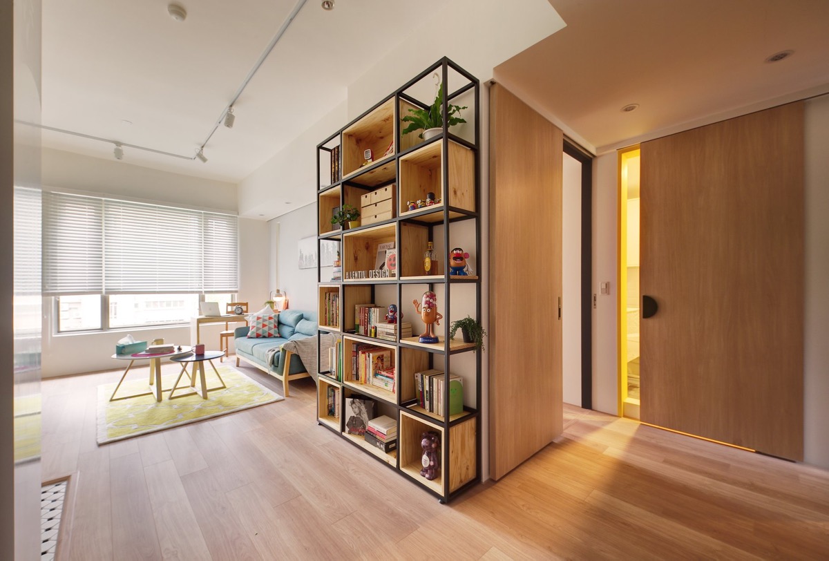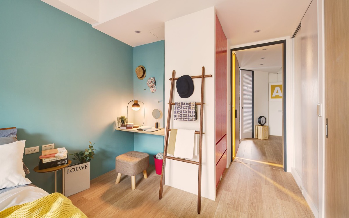 طراحي دکوراسيون اين خانه رنگارنگ در متراژ ۶۲٫۸ متر مربع که خانه اي ۱۰ ساله و متعلق به زن و شوهري بدون فرزند است در تايوان انجام شده است.