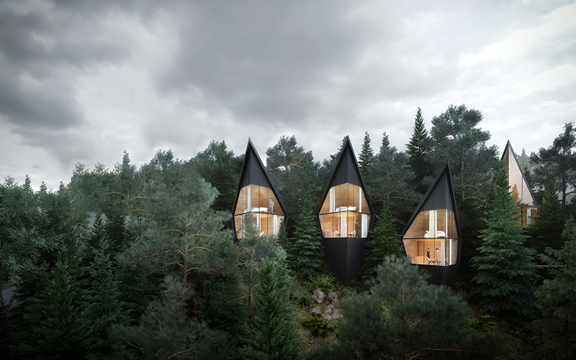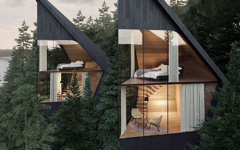 به گزارش گالري آنلاين، اين طراحي ها شامل سوئيت هايي دوبلکس است که با تاثير از فرم درختان کاج و صنوبر طراحي شده تا به راحتي در عمق و بافت جنگل همپوشاني شود و دخالت انسان در طبيعت کمتر مشاهده شود؛ که حسي فروتنانه را نيز به جنگل Dolomites ايتاليا بخشيده اند.