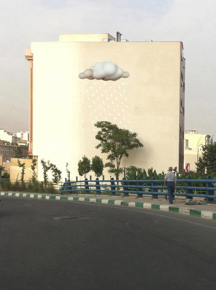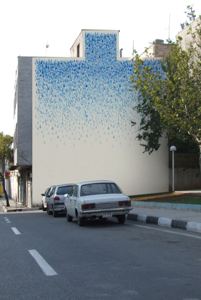 بسياري از نقاشي هاي ديواري او با محيط اطراف شهري نيز تعامل دارند. مانند قطرات بارات که به درخت ايستاده در کنار خيابان منتهي ميشود.