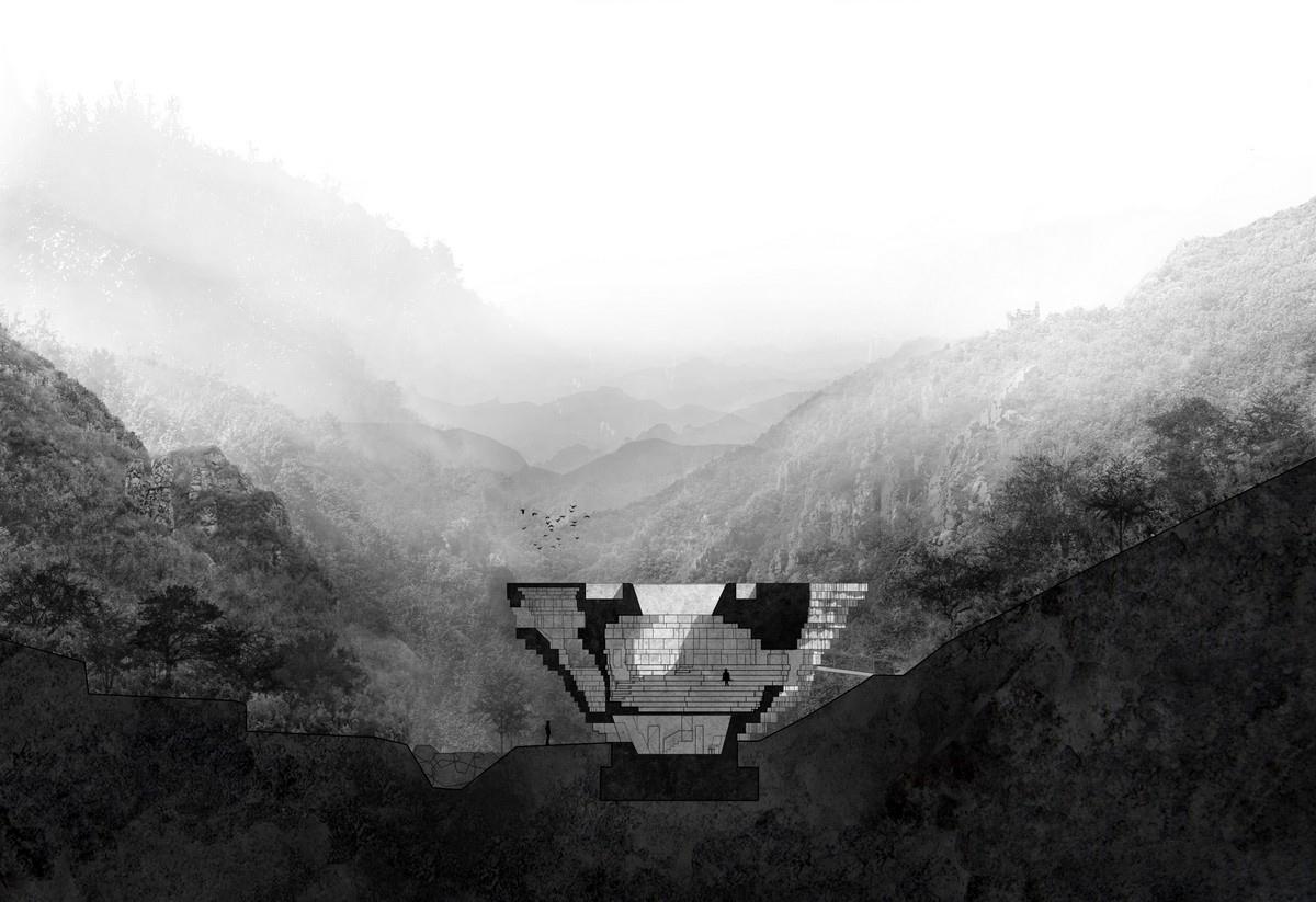 اين پروژه ميزبان يک آمفي تئاتر نيمه روباز است. پنجره‌هاي بزرگ سقفي، همراه با ديافراگم‌هاي کوچک‌تر که به ديواره‌ ي آن برش داده مي‌شود، مناظر آسمان و دره اطراف، و همچنين صداهاي متفاوت طبيعت را ارائه مي‌دهد.