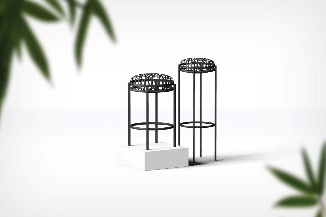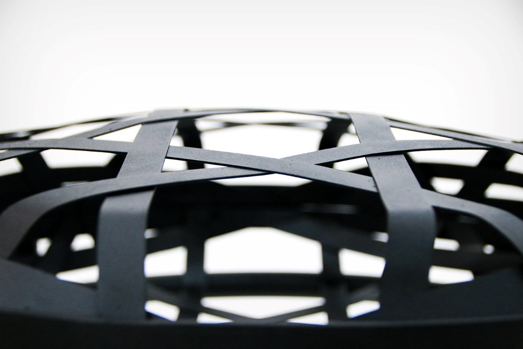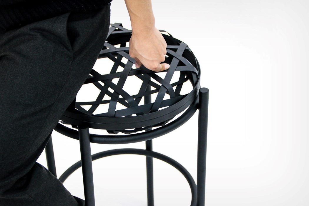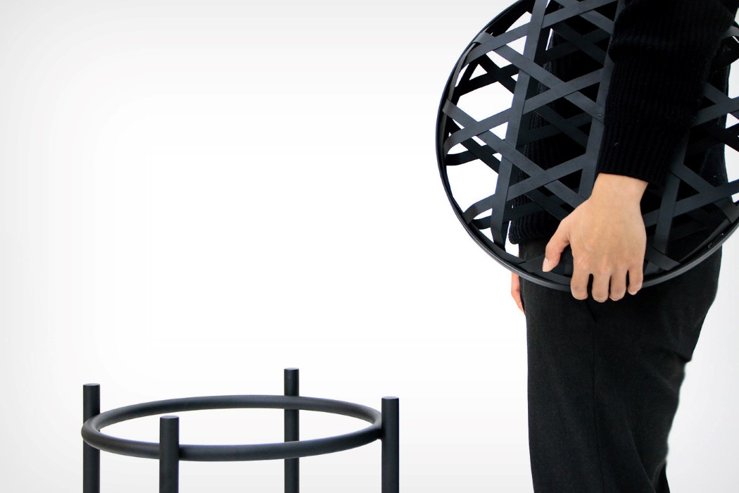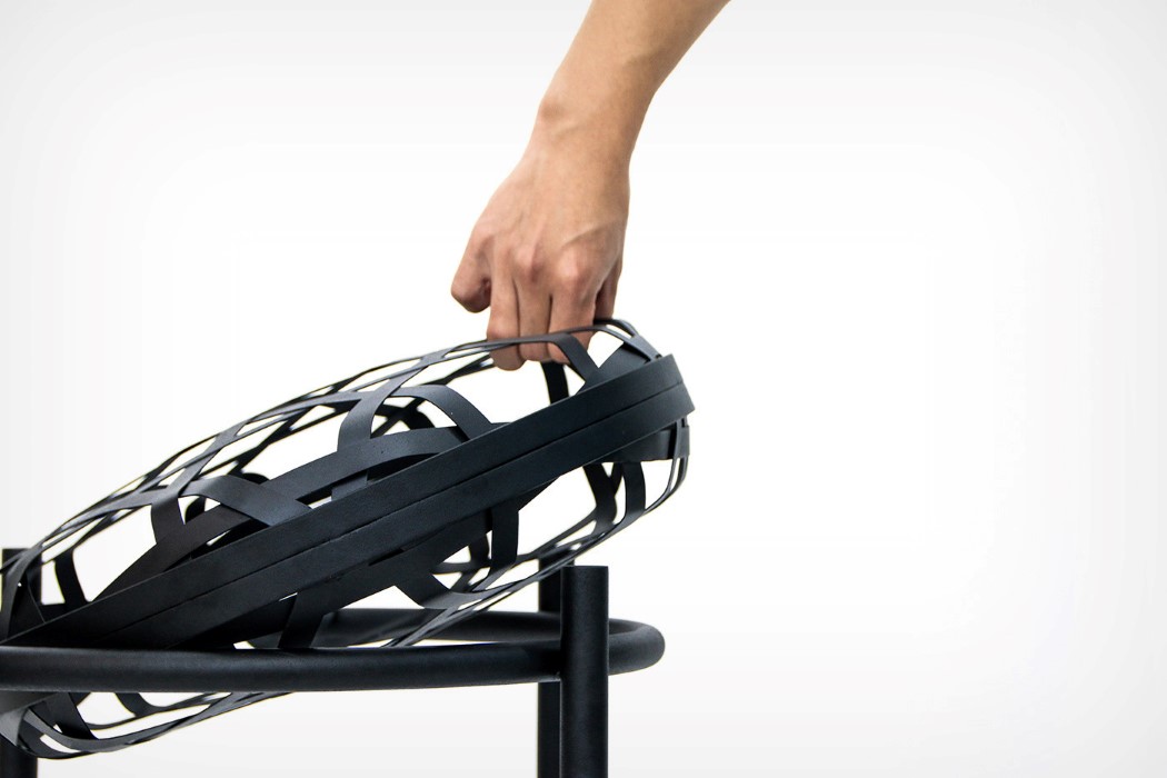 نوارهايي که گويي به دور يک بادکنک نامرئي پيچيده شده، چهار پايه اي را با الهام از نگاره هاي سنتي کره اي ايجاد کرده است.