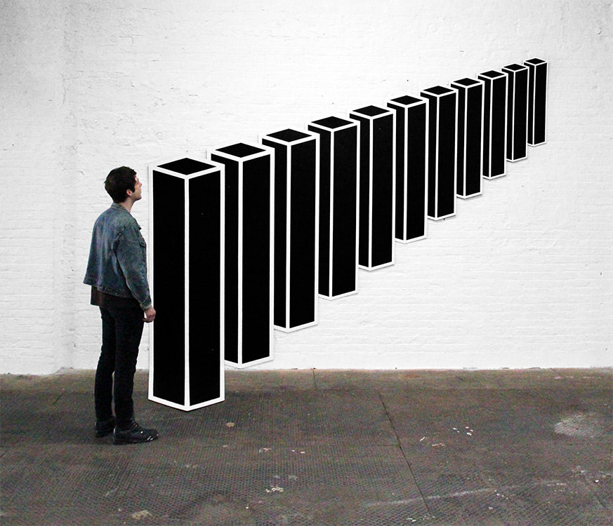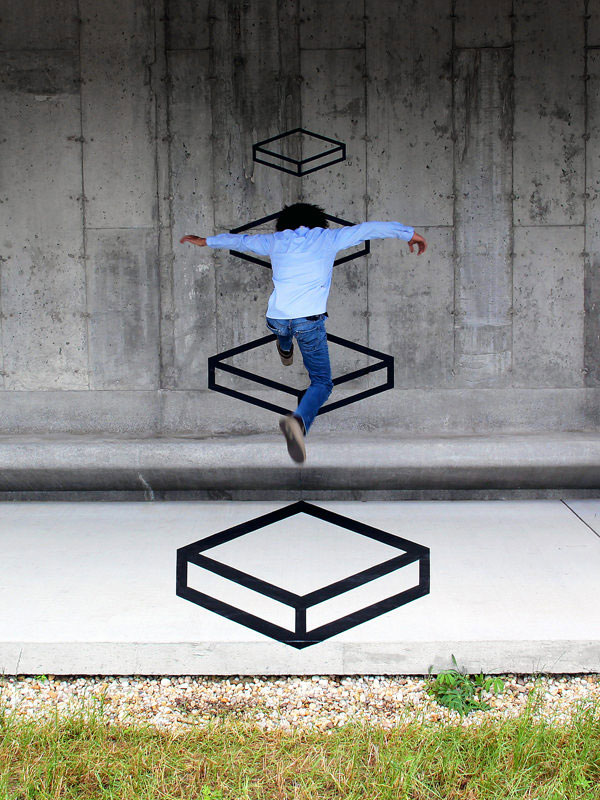 در فضايي که روي زمين سايه افکنده بود، پايهاي روي زمين قرار داشت که با اشکالي که من در چاپ استفاده ميکردم تطبيق ميکرد، بنابراين من به طور غريزي سايه را با نوار روي دستم مشخص کردم.