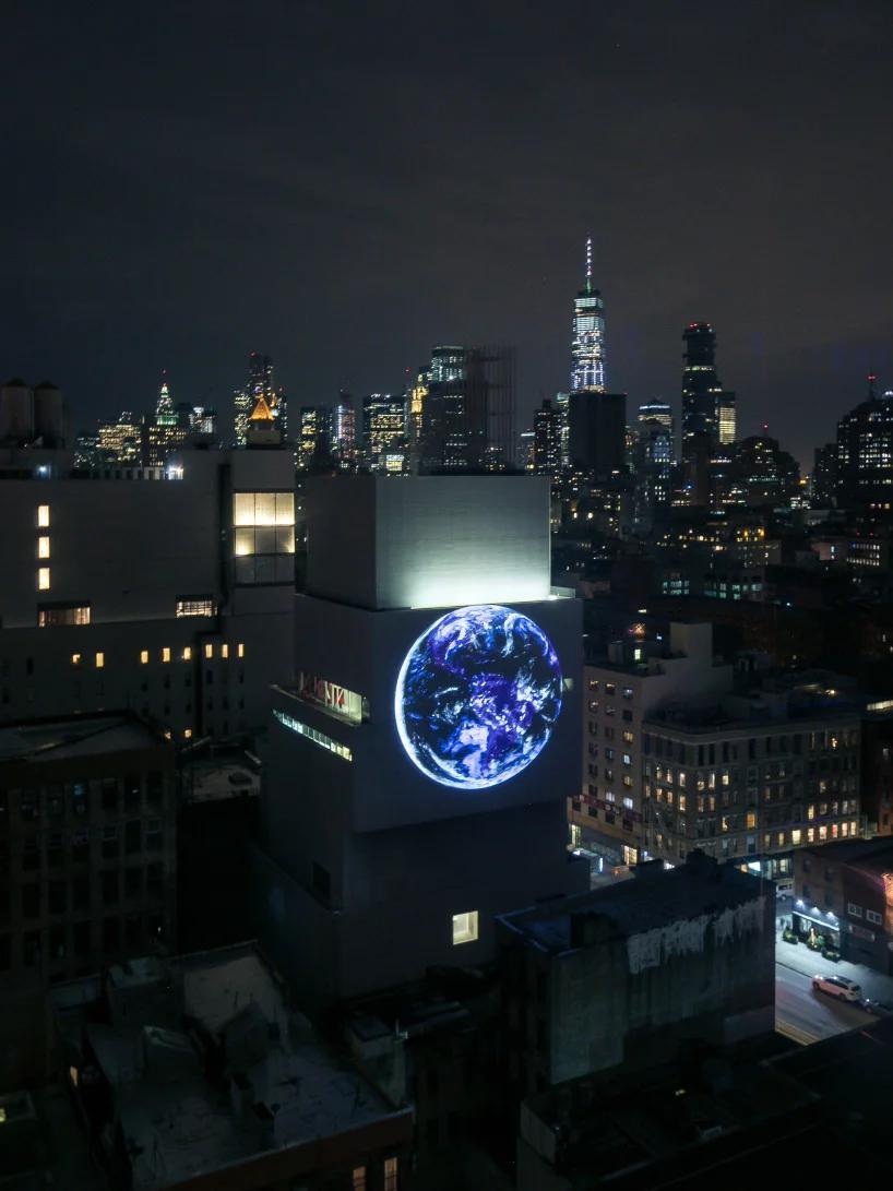 يک مجسمه ۲۰ فوتي در نيويورک، نمايش زمين از ماهواره ناسا در فضا را به نمايش ميگذارد.