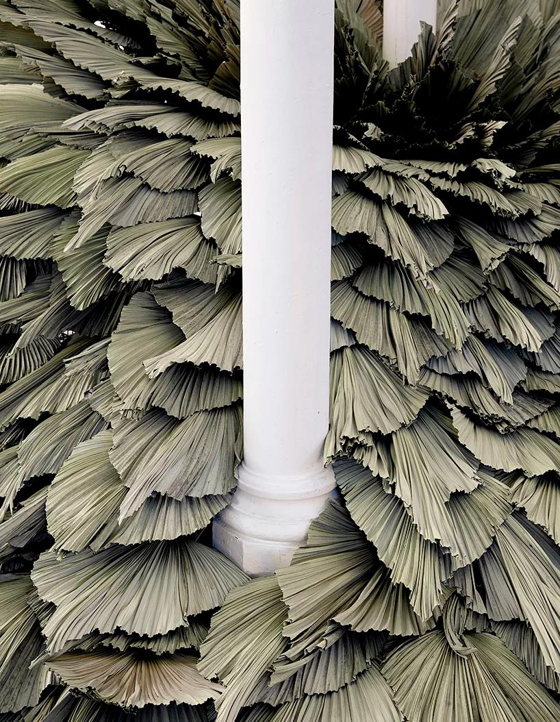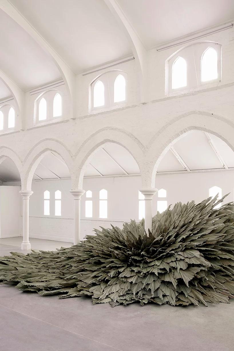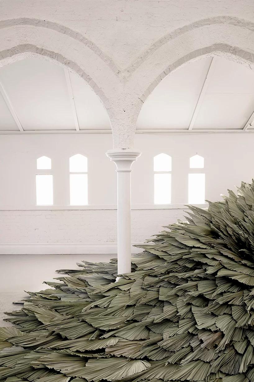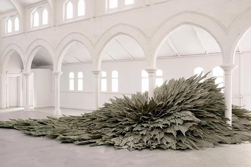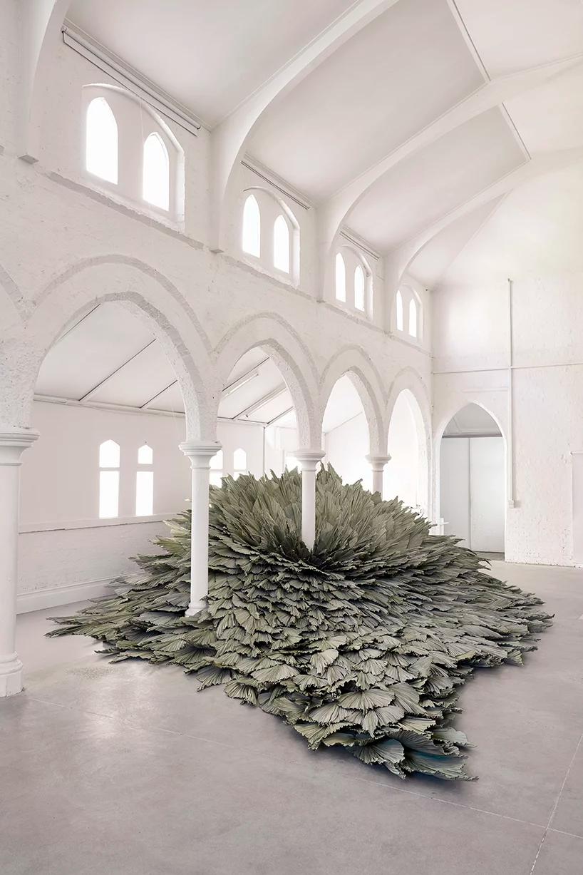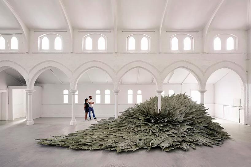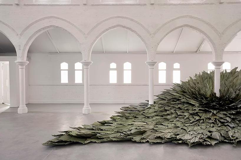 به گزارش گالري آنلاين، اين اثر با عنوان «Proximity» که در داخل تالار يک کليساي قرن نوزدهم ساخته شد، يک سازه است که از چندين رديف برگ براي يادآوري نقش طبيعت و تعامل آن با محيط مصنوع ساخته شده است.