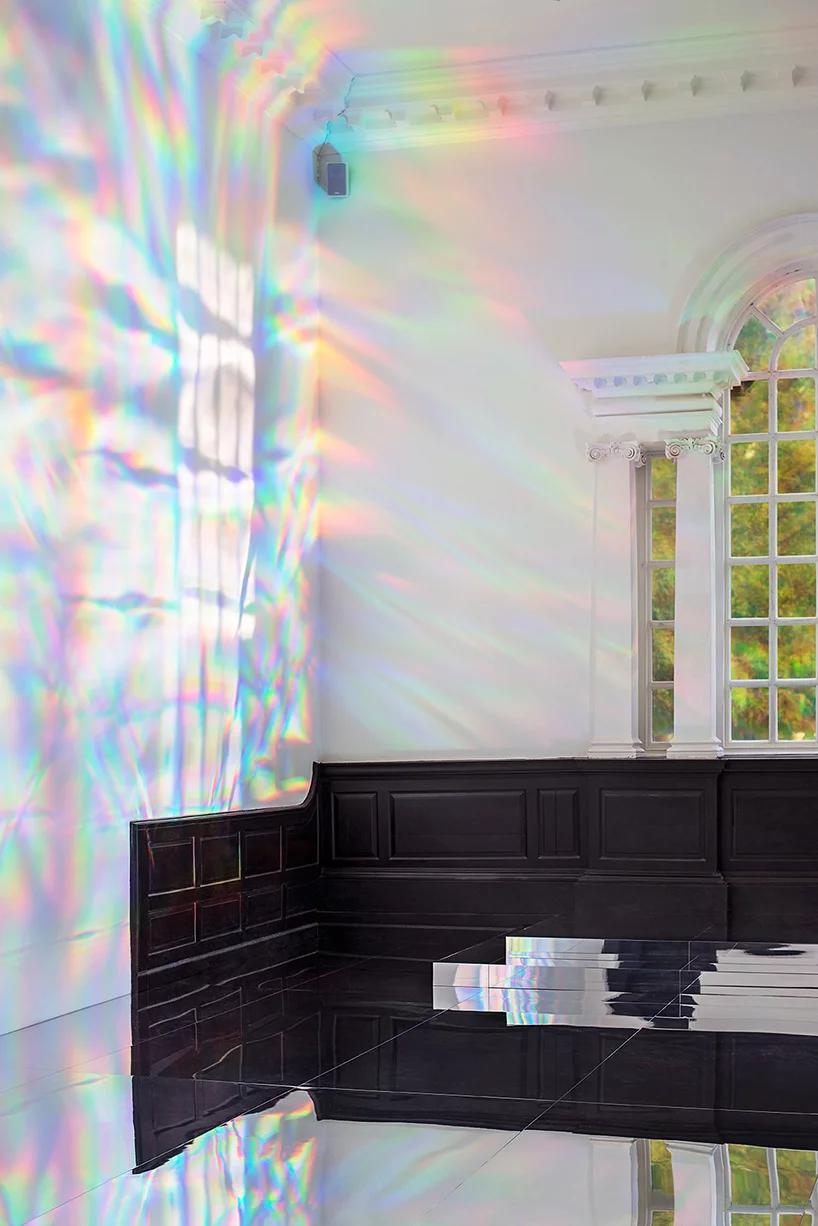 نور با چاشني ملايم جابهجايي (کفپوش انعکاسي و توري پراش) از پنجرههاي کليساي جامع در رنگهاي بيشماري وارد شده و بينهايت بار بر روي هر سطحي منکسر ميشود.