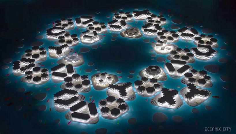 گروه bjarke ingels، مفهوم شهر شناور را که از جزاير شش ضلعي تشکيل شده است، به نمايش مي گذارد