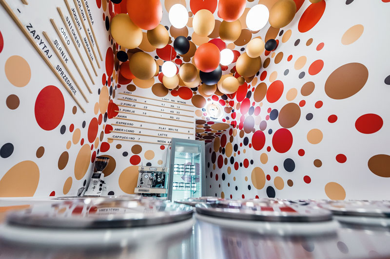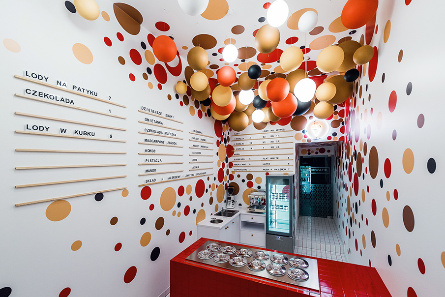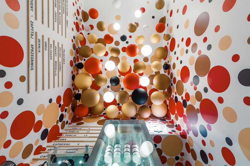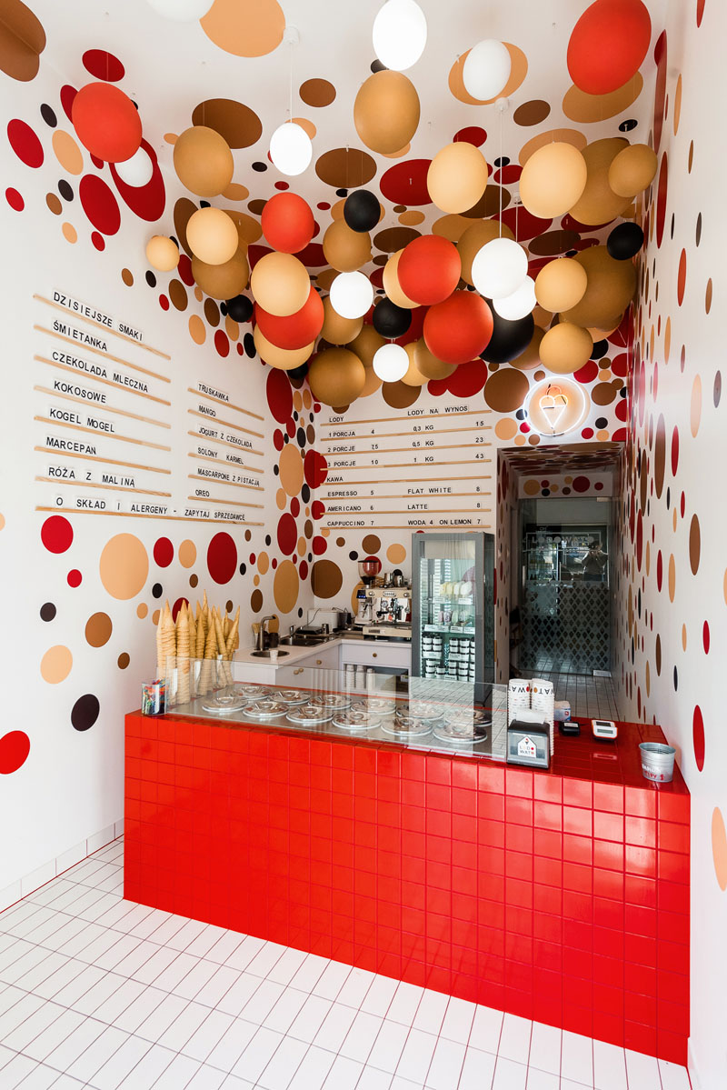 نگاهي بر طراحي داخلي فروشگاه بستني فروشي در لهستاناز گالری آنلاین / آوریل 22, 2019 گروه طراحي Musk براي يک بستني فروشي محلي در لهستان فضاي داخلي را با استفاده از توپ هاي معلق رنگي طراحي کرده است.