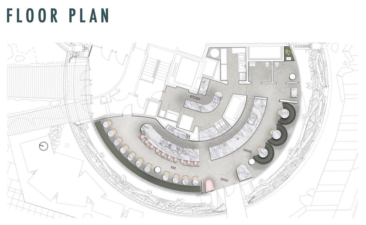 طراحي رستوراني در قسمت پاييني يک کره در پاييز سال 2018 توسط گروه معماري Heliotrope انجام شده است. اين رستوران سه طبقه همانند يک جنگل سرسبز طراحي شده است که مساحتي برابر با 1900 فوت مربع دارد و ظرفيت آن 50 نفر مي باشد.