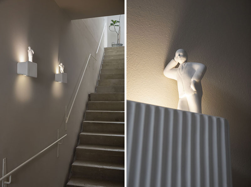 به گزارش گالري آنلاين، اين چراغ مجسمه مردي است که حالت هاي آن الهام گرفته شده از يک ناظر ساختمان است و به نوعي منبع نور را در حال نظارت به نورپردازي بخشي از خانه نشان ميدهد.
