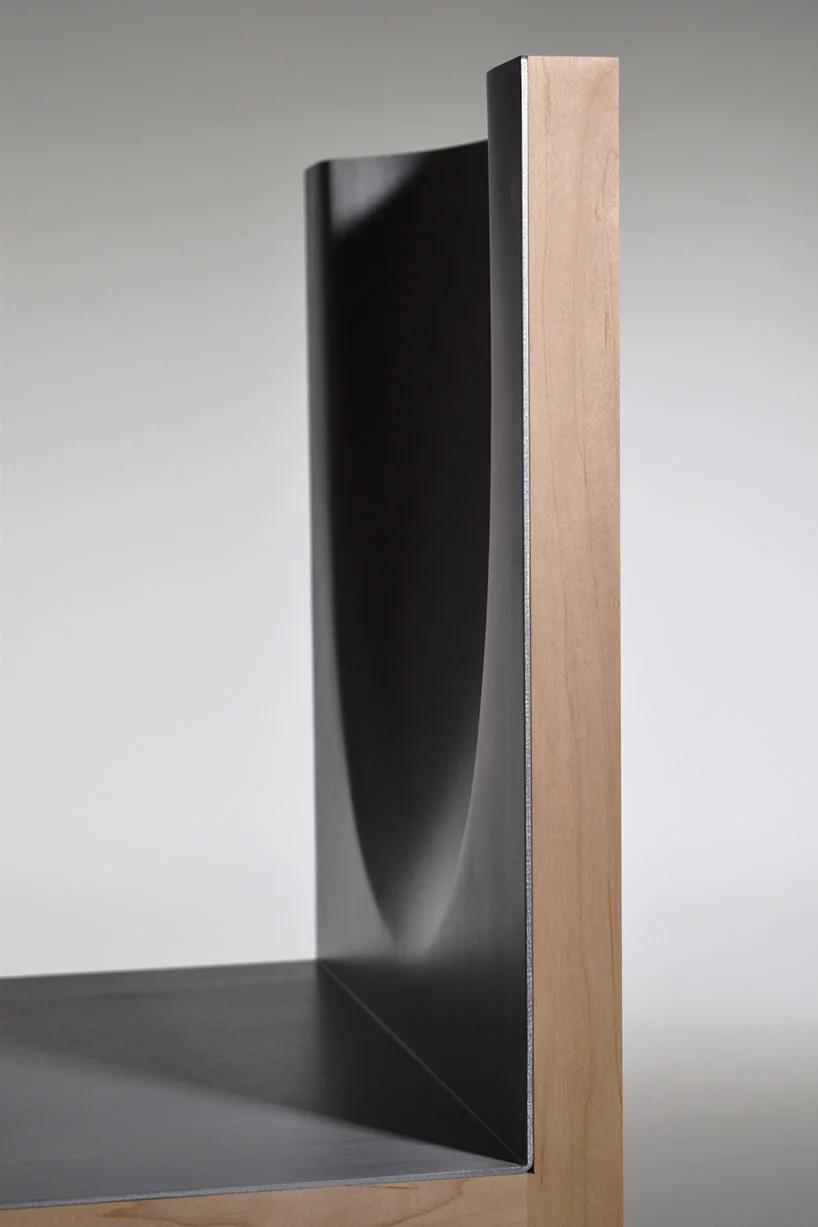 به گزارش گالري آنلاين، صفحه اي که روي پشتي صندلي قرار گرفته از ورق آلومينيومي با ضخامت 3 ميليمتر ساخته شده و به شکل خم شده است. طراح در اين طراحي تکنولوژي جديدي را که معمولا براي نماي ساختمان هاي معماري کاربرد دارد، استفاده مي کند. اين فرآيند که "شکلدهنده افزايشي" ناميده ميشود توسط متخصص فلز ژاپني، kikukawa kogyo توسعه داده شده است که بر روي طرحهاي معماران مشهوري چون kazuyo sejima و foster و شرکا به کار رفته است.