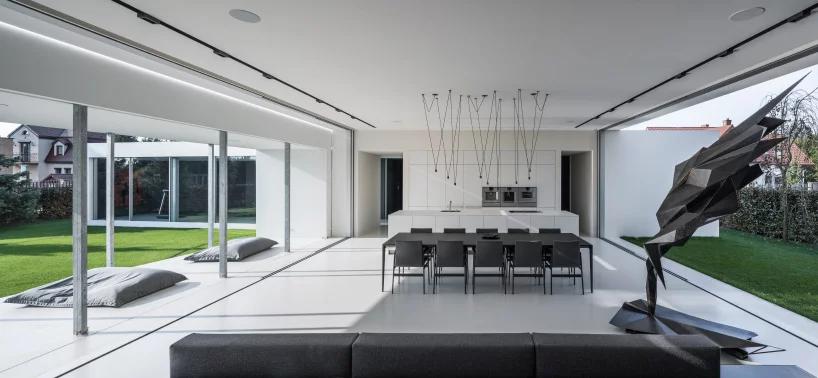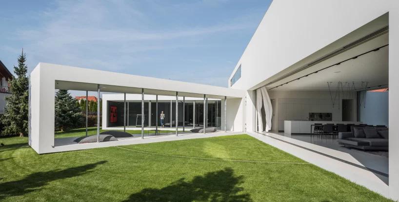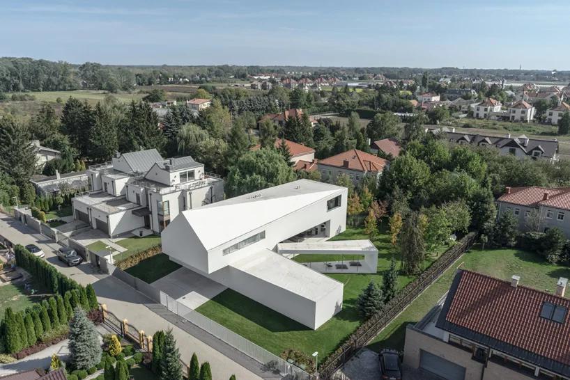 به گزارش گالري آنلاين، اين خانه در حومه هاي لهستان طراحي شده است و شامل يک ساختمان دو طبقه در زاويه عمود بر خيابان؛ و يک ساختار يک طبقه موازي با جاده است.