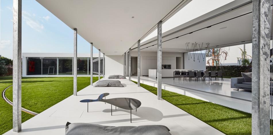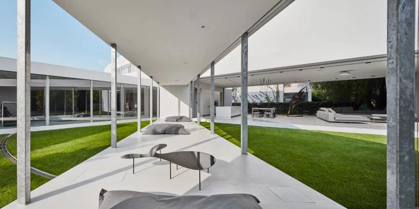 اين تراس به شکلي طراحي شده که چمن طبيعي مي تواند در زير آن رشد کند و به حرکت خورشيد واکنش نشان بدهد.