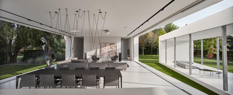 طراحي KWK promes از لولاها و ريل ها استفاده مي کند به طوري که بخشي از آن قادر به چرخش 90 درجه است و يک باغ مجزا در پشت خانه ايجاد مي کند.