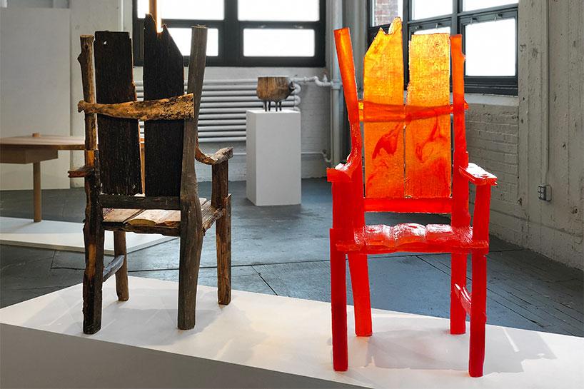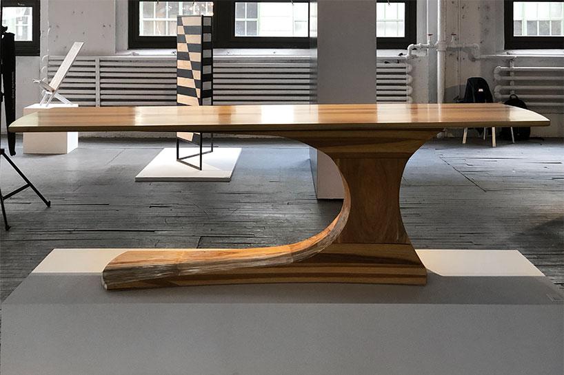 اين کارها با چوب براي TIMBER! نويدبخش تهيهکنندهها و توليدکنندههايي است که روشناييهاي گذشته صنعتي غني پيچيده را به همراه دارند. TIMBER! که سرپرستي آن را hannah martin بر عهده داشته، در طراحيهاي دلخواه بروکلين، يک اکوسيستم از کارها را با چوب ارائه ميکند، که طيفي از ميزهاي تراشيده شده با حجمهاي بزرگ، تا چهارپايههاي تهيهشده از کف جنگل داشتهاند. matthias plessnig، کسي بود که از جريان سفيد-گرم براي ذوب طولاني رشتههاي چوبي در اشکال ارگانيک وحشي استفاده ميکند؛ مجموعه ي تخممرغ ،کار سه نفراز طراحاني بود که زمينه ي هنري، معماري و کار با چوب را در حوزه وسايل خانه ظريف داشتند؛ و stephen talasnik کسي بود که کارهايش الهام گرفته از معماري بود.