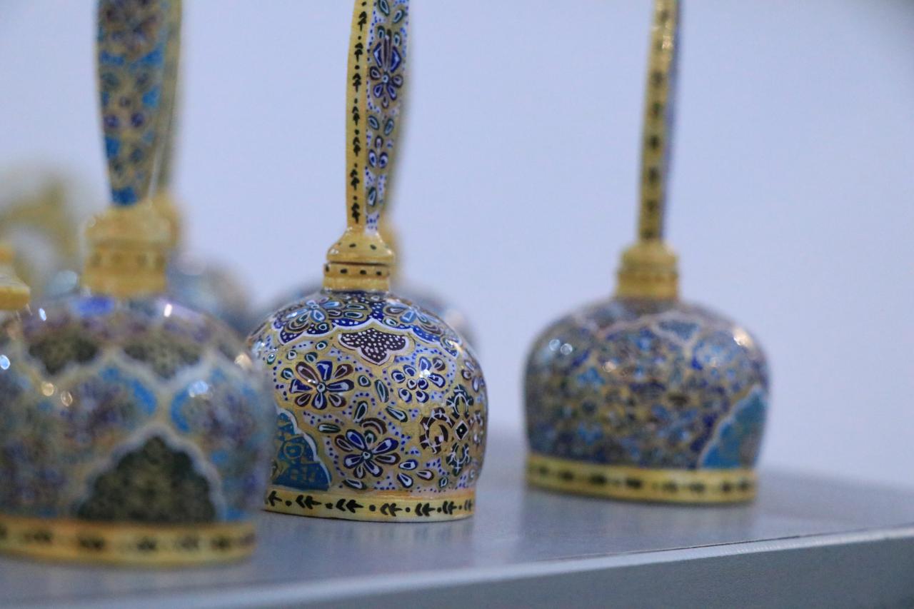 آثار ارائه شده در اين نمايشگاه شامل رشته هاي مختلف صنايع دستي از جمله: نقاشي ايراني (مينياتور)، تذهيب، تشعير، معرق منبت، زيورآلات در سبکهاي مختلف، نقاشي روي استخوان و قلمدان، سفالگري و… است.