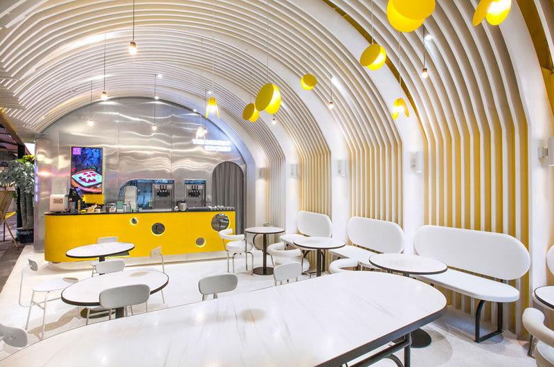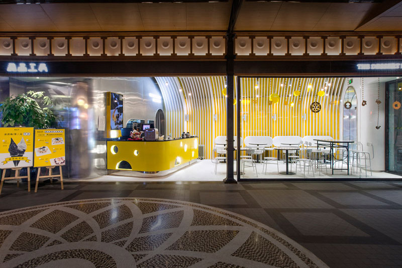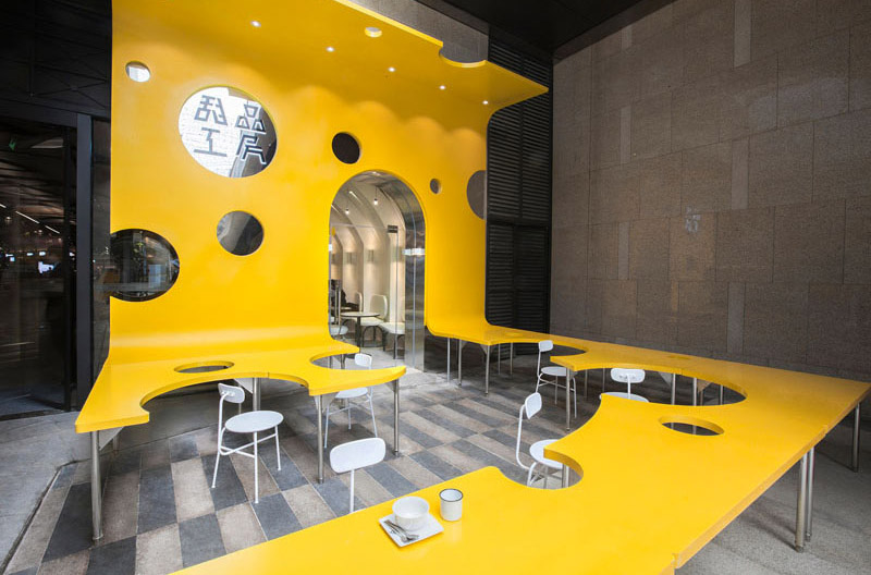 گروه معماران Towodesign کافه اي به نام Dessert KITCHEN را در يک فروشگاه زيرزميني در چنگدو، چين طراحي و اجرا نموده اند، که فضاهاي مختلفي در آن مانند يک تکه پنير طراحي شده است.