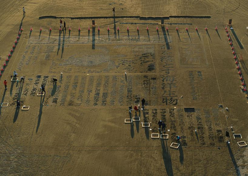 به گزارش گالري آنلاين، اين اثر با اندازه 50 در 35 متر، حکاکي شده روي شن و ماسه ساحل iioka در شرق ژاپن به عنوان معنايي از سخن گفتن از طرف دريا است که در سکوت رنج مي برد. Hosaka و تيمش از طريق اين کار زندگي موجودات دريايي را در مقياس غول پيکر نشان ميدهند ؛ و به اين موضوع اشاره دارند که 8 ميليون تن پلاستيک که هر روز در جهان استفاده مي شود، در نهايت به رودخانه ها و اقيانوس ها ريخته مي شود. تقريبا 700 گونه از حيوانات شامل لاک پشت هاي دريايي، پرنده هاي دريايي، خوک هاي آبي و ماهي ها آسيب ميبينند و کشته مي شوند. هنرمند ، همراه با تيمي از دانشجويان و ساکنان محلي، زمين کار را در 11 روز تکميل کردند.