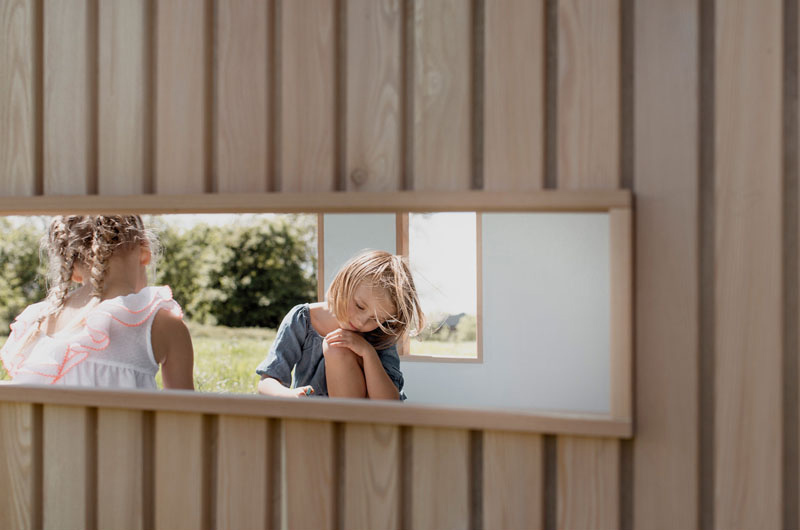 طراحان در اين پروژه مي خواستند فضايي را ايجاد کنند که بتوان هم به منظور آموزش و هم بازي کردن استفاده کرد، و اين احساس را که فضا به اندازه کافي باز است منتقل کنند تا احساس جدا شدن از محيط براي کودک ايجاد نشود. پنجره هاي افقي و عمودي اجازه ي داشتن ويوهاي کوچک از داخل خانه بازي را، در کنار تقويت تخيل در زمان بازي به کودکان ميدهد.