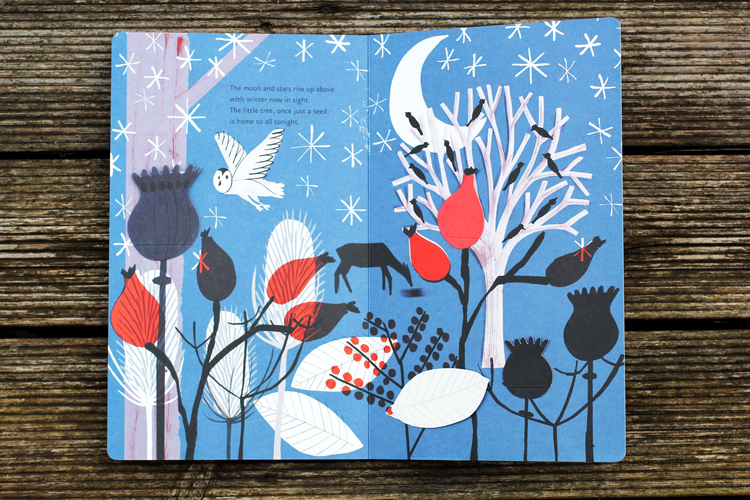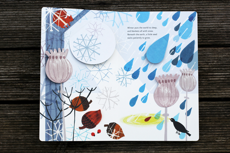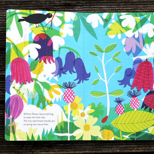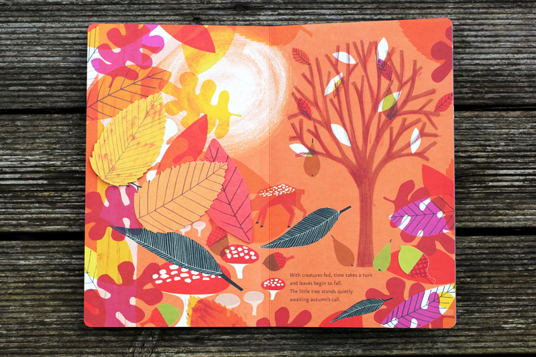 درخت کوچک نيز در سمت راست هر تصوير جديد وجود دارد، اما در هر تصوير بزرگتر شده و با هر تغيير فصل او هم تغيير ميکند. اين کتاب طبيعت گردش فصل ها را بررسي ميکند و با هر بار ورق زدن خواننده ميتواند مراحل رشد درخت را ببيند.