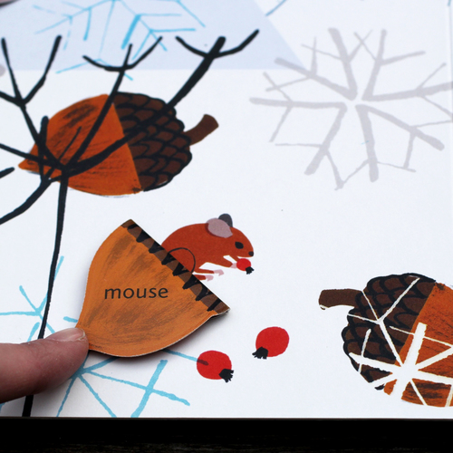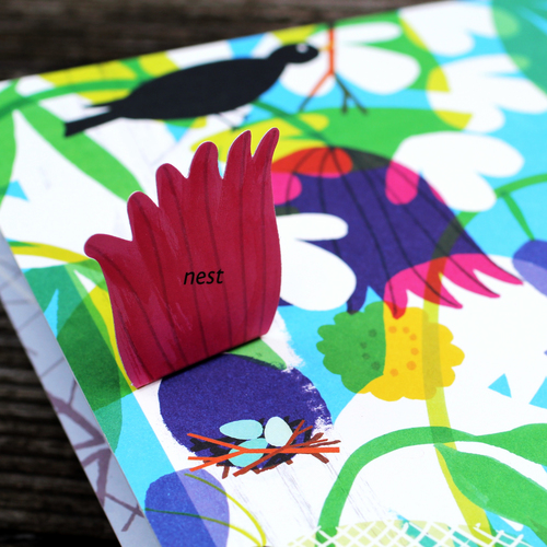اين کتاب مصور جذاب بيش از 20 فلاپ دارد، هر فلپ در تصوير، تعدادي از جزئيات زرق و برق دار در هر صفحه مانند سوسک، باران، لانه، پيکان، عنکبوت، زالو، کرم، جغد و دانه را در خود پنهان ميکند.