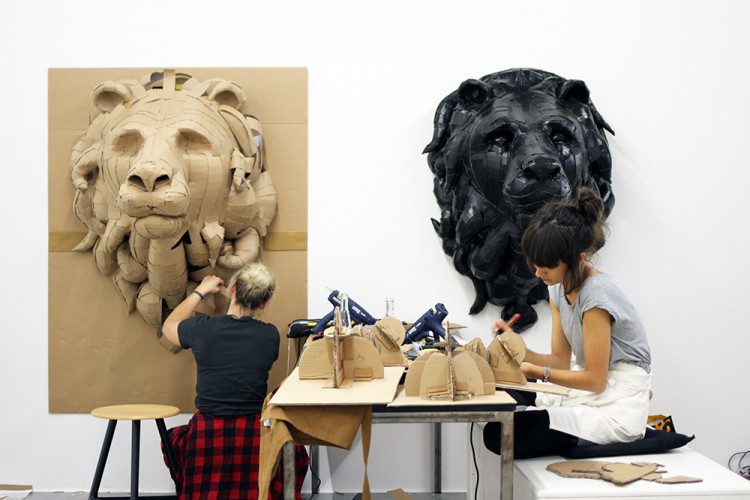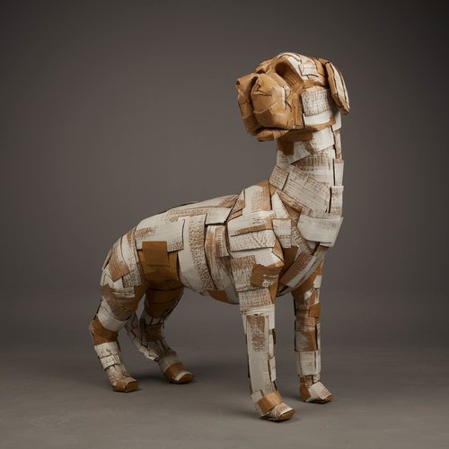 اين هنرمند که از چهره هاي شناخته شده در مجسمه سازي است با استفاده از مواد مرتب شده مجسمه مي سازد.