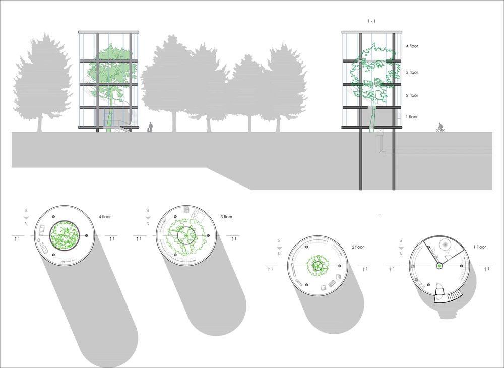 معمار قزاقستاني Aibek Almassov خانه شيشه اي را حول محور يک درخت به شکلي ساخته که کاربر در تمام طبقات ارتباط مستقيمي با طبيعت خواهد داشت.