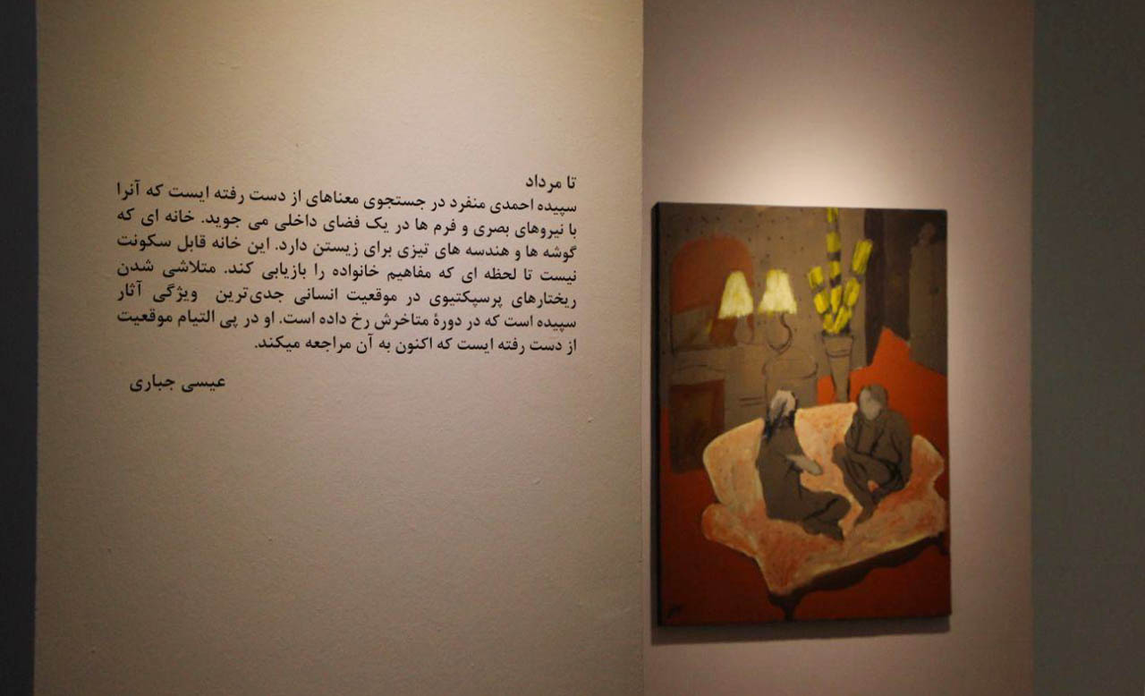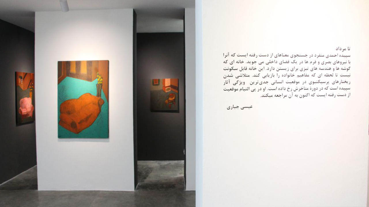 نمايشگاهي از نقاشي هاي سپيده احمدي منفرد تحت عنوان "تامرداد" از روز جمعه 11 مردادماه در گالري سايه برپا شده است.