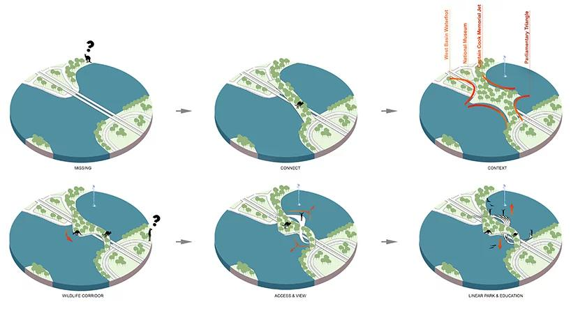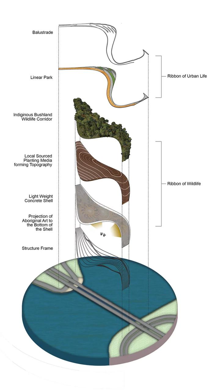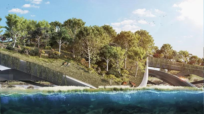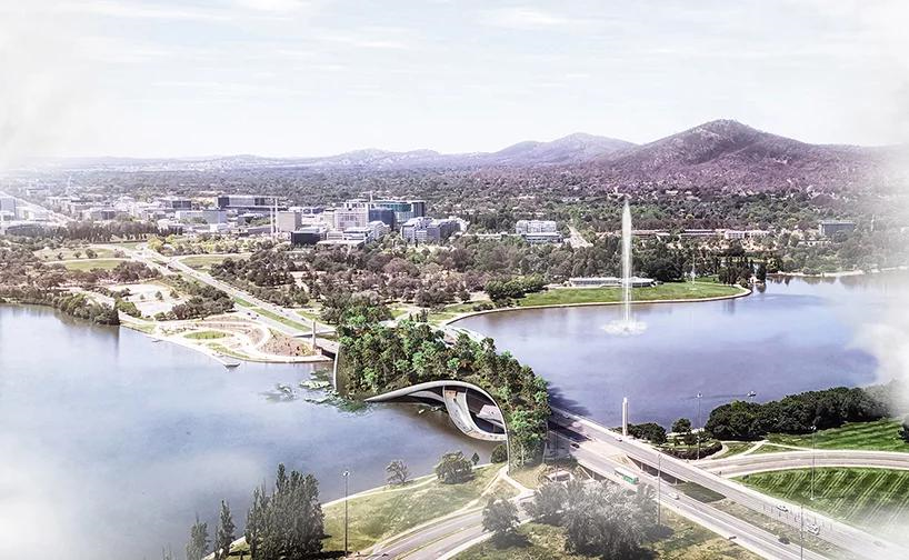 پل عابر cx براي رقابت "پيوندهاي از دست رفته" در استراليا شامل نوار هاي سبز است که يک پل را در کانبرا ، استراليا احيا مي کند.