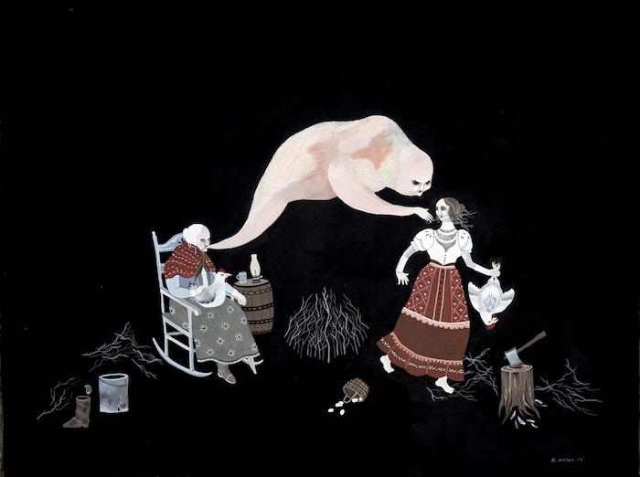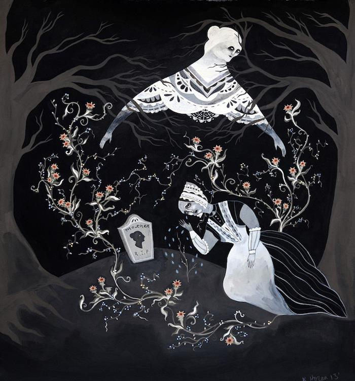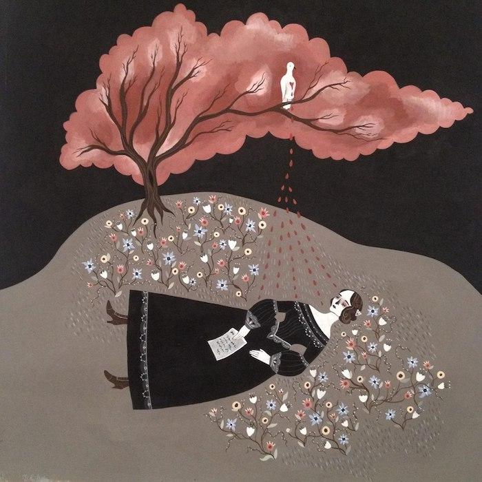 به گزارش گالري آنلاين، تصنيف هاي قتل به موسيقي تاريخ قرون وسطايي برمي گردد. هنرمند و تصويرگر کتي هوران دو عدد از اين آهنگ هاي کلاسيک را به نام هاي The Dreadful Wind and Rain و The Bloody Gardener تصوير کرده است.