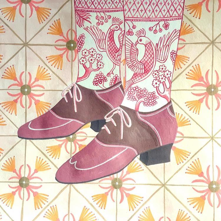 آنها پوشيده از لباس هايي هستند که با پترن پوشيده شده و اغلب از عناصر موجود در پس زمينه استفاده کرده است. به اين طريق خط بين پيش زمينه و پس زمينه محو شده است.