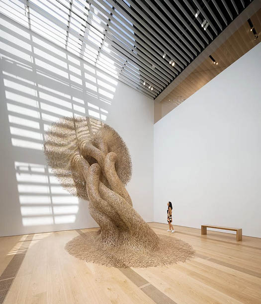 برجسته ترين آثار موجود در اين مجموعه يک اثر هنر ديجيتال و يک چيدمان بامبو است.