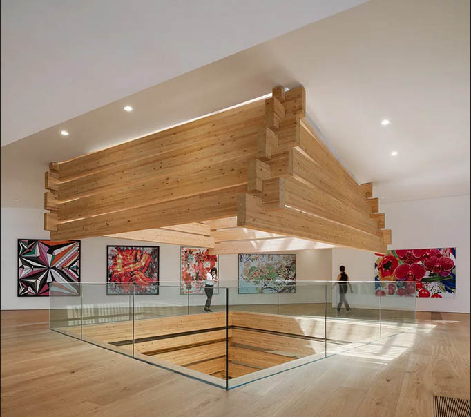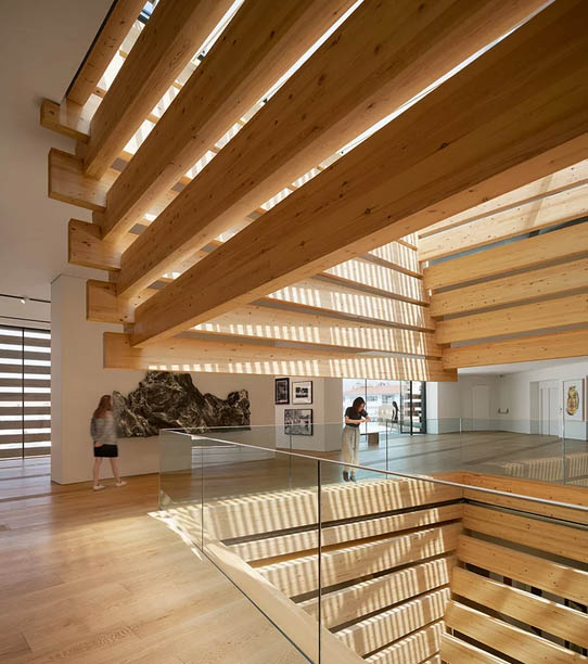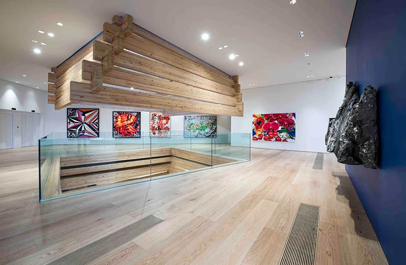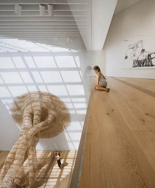 اين موزه در سه طبقه تقسيم شده است، فضاي نمايشگاهي طبقه اول آن ريتم و مقياس منظره شهر اطراف را نشان مي دهد و با اتاق هاي کوچکتر در سطح بالايي که براي آثار هنري در مقياس کوچکتر طراحي شده است، ادامه مي يابد.