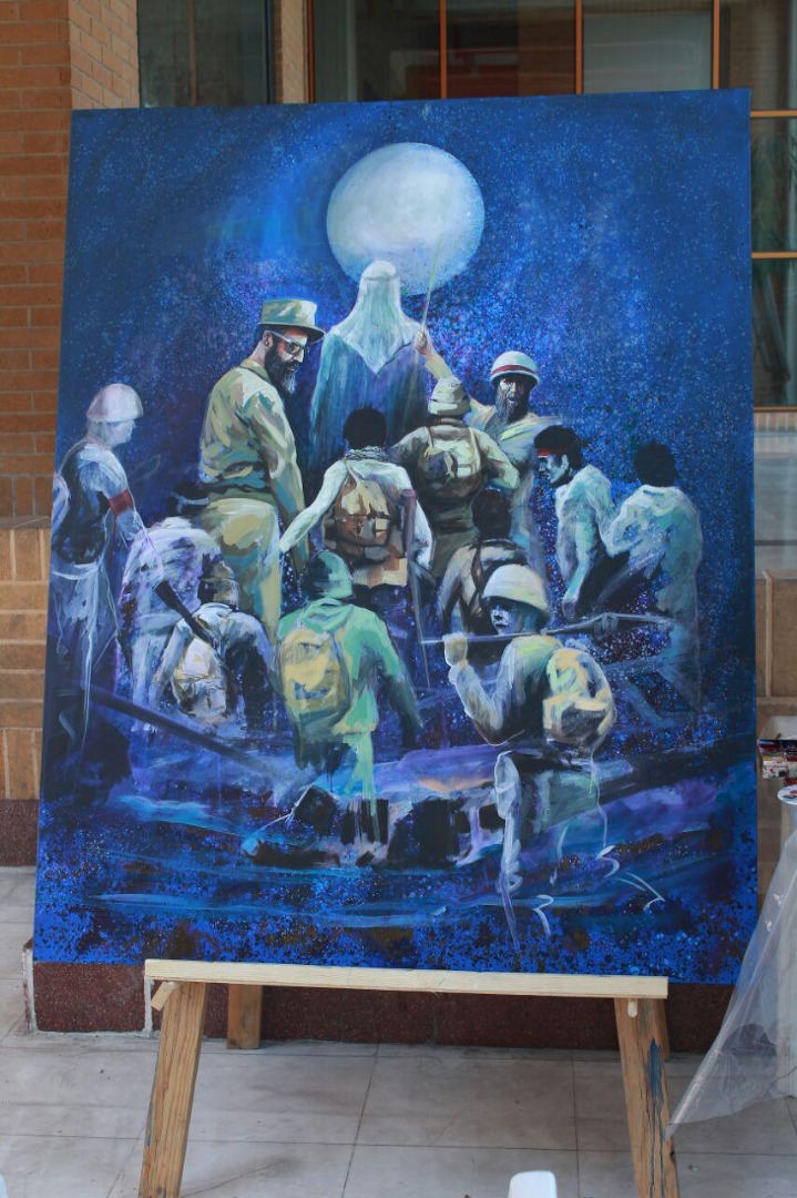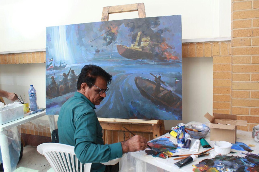 در اين کارگاه دو روزه، بيست هنرمند منتخب از سراسر کشور آثار خود با موضوع ايستادگي، پايمردي و پيروزي رزمندگان در 8 سال دفاع مقدس را روي بوم نقاشي به تصوير کشيدند. در پايان روز دوم به انتخاب هيئت داوران، حبيبالله صادقي، مصطفي گودرزي، محمدصادق چليپا و محمدعلي طاهري، سه نفر منتخب معرفي و جوايزي به آنها اهدا شد.