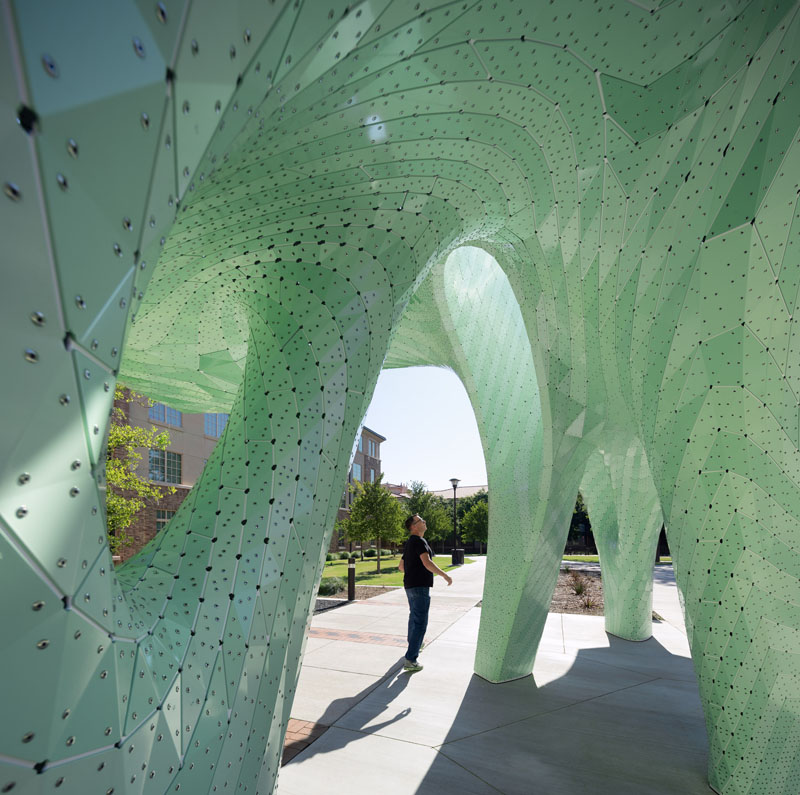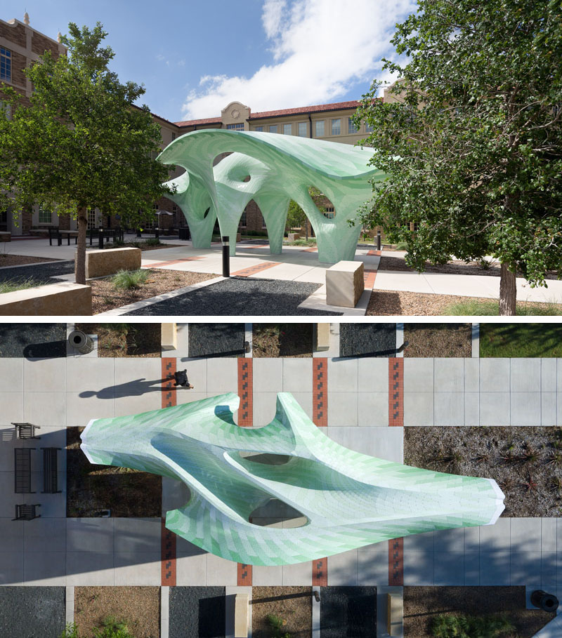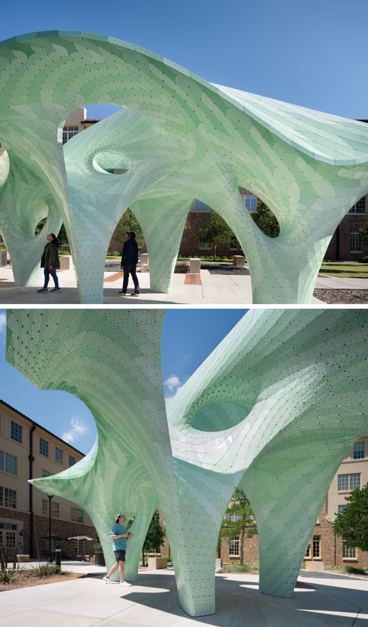 دانشگاه فناوري تگزاس مجسمه اي را با کاربري سايبان در حياط دانشگاه قرار داده است.