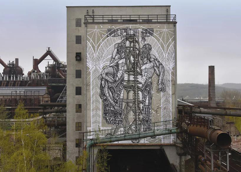 موجودات اسطوره اي در مقياس بزرگ توسط هنرمند معاصر فرانسوي monkeybird بر روي ديوارها خلق ميشود.