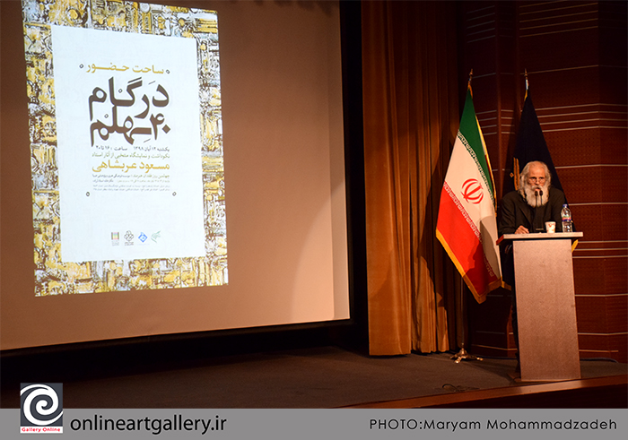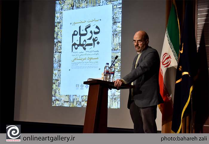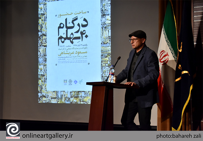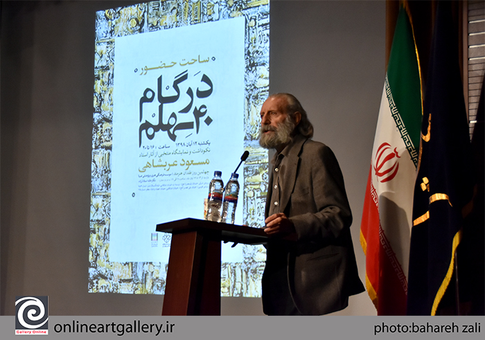 در ابتداي اين مراسم حسين خاني، رئيس موسسه فرهنگي و هنري صبا و معاون فرهنگستان هنر در سخناني ضمن گراميداشت ياد و خاطر زندهياد مسعود عربشاهي، اظهار کرد: بهانه حضور ما يادکرد چهلمين روز فراغ هنرمندي است که پيشگام هنر نوگراي ايران از دهه ۴۰ است. هنرمندي که در جنبش سقاخانهاي نقش مهمي داشت و تا آخرين روزهاي زندگي خود کار کرد و اثر دست او زينت بخش بسياري از ساختمانهاي تهران است.