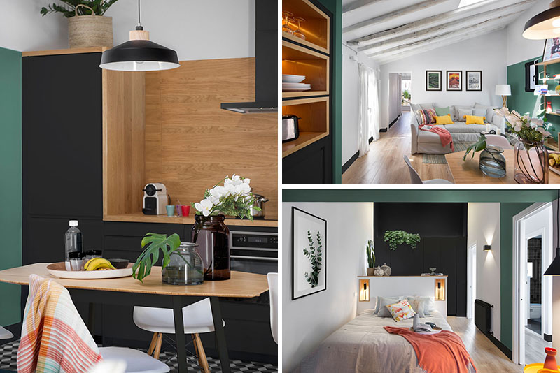 استفاده از رنگ هاي سبز و مشکي در دکوراسيون آپارتماني در اسپانيا