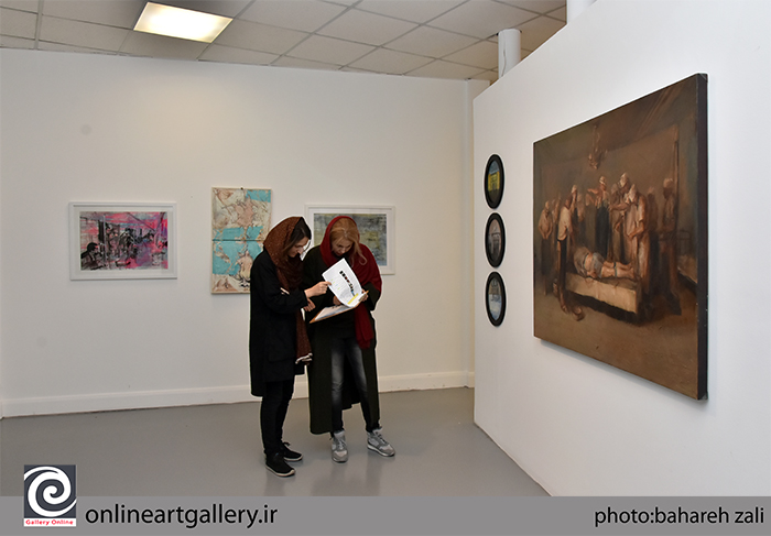 به گزارش گالري آنلاين، نمايشگاه نخست از مجموعهٔ نمايشگاههاي «متن در متن» شامل آثار برگزيده ۵۰ هنرمند از ميان ۲۵۹ نفر است، که پيرو فراخوان انجمن هنرمندان نقاش ايران در رابطه با اين نمايشگاه، که شرکت براي عموم در آن آزاد بود، برگزار مي شود.