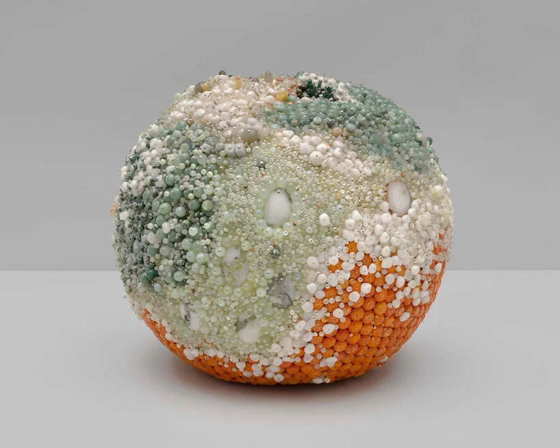کاتلين رايان مجسمه هاي ميوه اي کپک زده را از سنگهاي قيمتي و نيمه قيمتي ايجاد مي کند.
