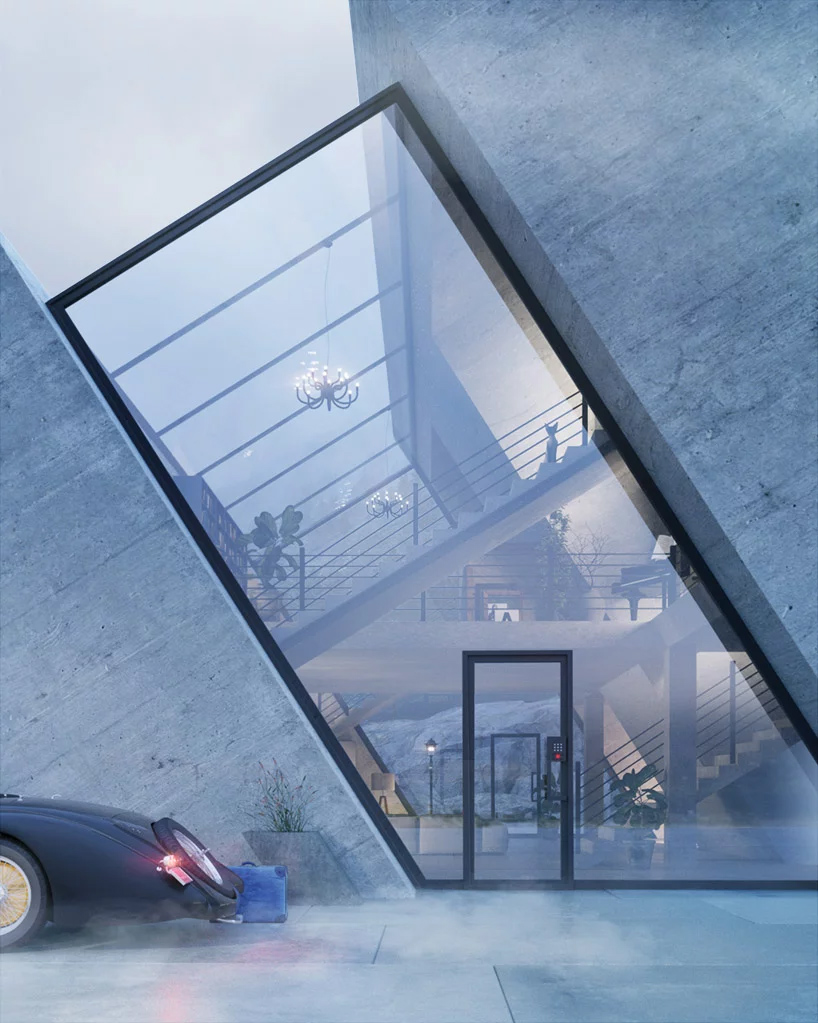 با وجود اين عناصر شيشه اي، ساکنان مي توانند در کل عرض خانه را ببينند، فضايي باز ايجاد کنند و همچنين نور طبيعي را به عمق حجم بياورند.