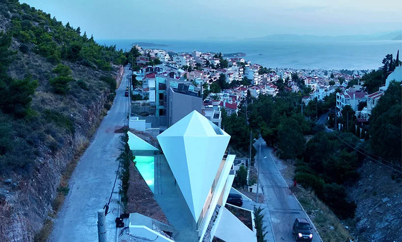 به گزارش گالري آنلاين، خانه الماس که دردامنه کوه ايميتوس واقع شده است، خانه اي مسکوني چهار طبقه متعلق به زوجي درشهرک وولا در حومه جنوبي آتن، يونان است. اين خانه 300 متري به دليل موقعيت استراتژيک خود نسبت به دريا و کوهپايه، به عنوان ساختماني بي حفاظ توام با ويژگي هاي مناسب و سازگار طراحي شده است. شکل مکان نيز حالت منشوري در طرح ايجاد مي کند.