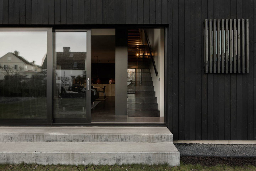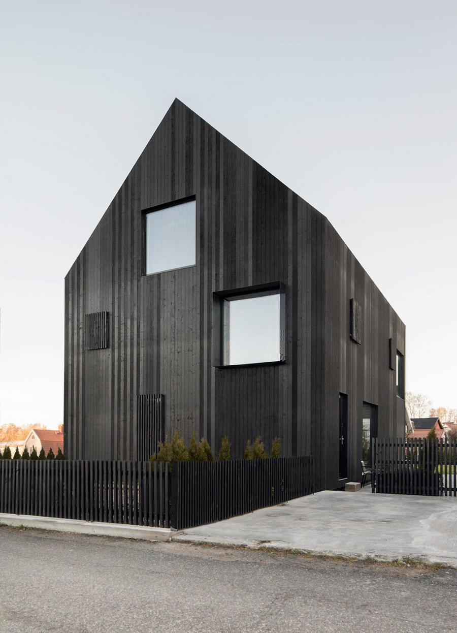 در يک منطقه مسکوني Gothenburg، سوئد، شرکت محلي Bornstein Lyckefors محل اقامت سه طبقه برجسته با هندسه ساده و نماي بيروني کاملاً سياه را ارائه داده است.