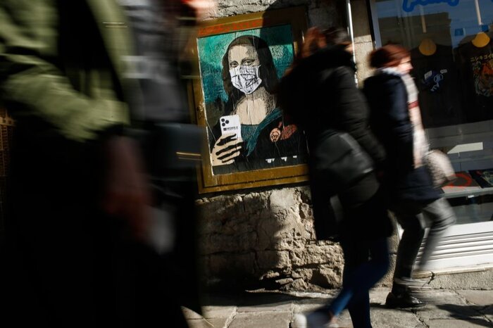 نقاشي ديواري هنرمند ايتاليايي سالواتوره که نقاشي موناليزا اثر لئوناردو داوينچي را با ماسک محافظ و تلفن همراه با عنوان موبايل ويروس جهاني، يکي از اين آثار است. کنگره جهاني موبايل به دليل هراس ناشي از شيوع ويروس کرونا لغو شد.