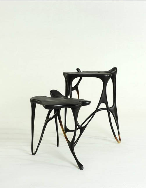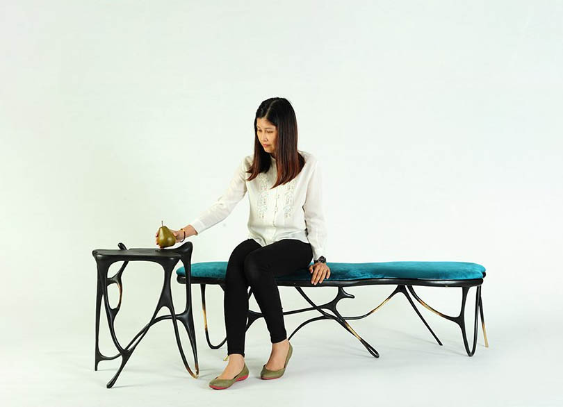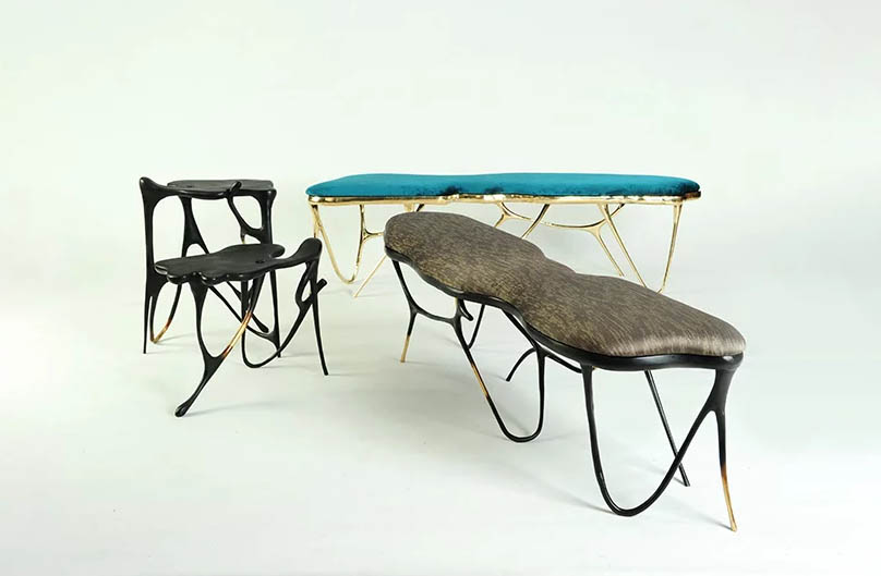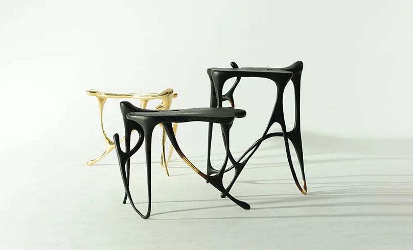 ميز عسلي و نيمکت دومين بخش از سري کلکسيون ink، با الهام از حرکت مداوم قلم مو، حروفي ظريف و بي عيب و نقص خلق کرده است. سري ink که از برنج ساخته شده تداعي کننده زيبايي پويا و در عين حال با ظرافت است که کاملاً با سبک نقاشي چيني هماهنگ مي باشد. اين دو اثر نيز با الهام از تقارن و هماهنگي موجود درخوشنويسي، با اين هدف طراحي شده اند تا هم از نظر بصري و هم از نظر ظاهري براي فرد لذت بخش باشند.