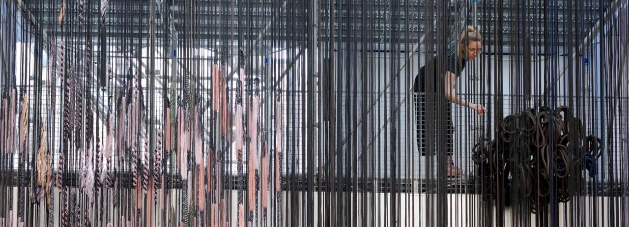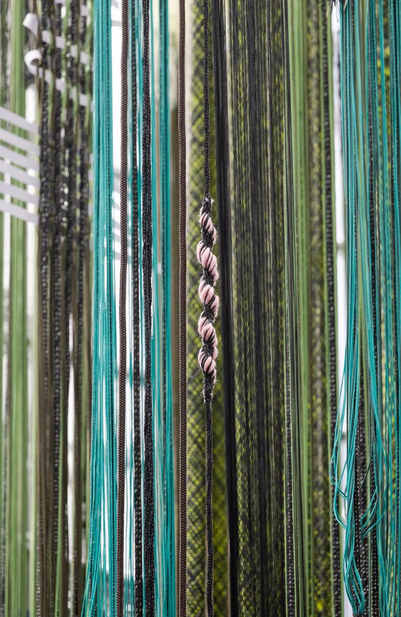 به گزارش گالري آنلاين، اين هنرمند در نمايش اثر خود تحت عنوان "interlace"، با بهره گيري از ويژگي هاي اجرايي ساختمان، فضاي داخلي گالري را به کارگاه نساجي وسيعي که پيوسته در حال جابجايي و تغيير مکان بود، تبديل کرد. کارگاه بافندگي بزرگي که براي بازديد عموم آزاد بود. hella jongeius يکي از تأثيرگذارترين و بانفوذترين چهره هاي طراحي بين المللي است. تحقيقات نظري و تجربي او در کارگاهش "jongeriuslab" در برلين به بررسي موضوعات گوناگوني که اغلب در رابطه با اهميت رنگ ها و مواد است، مي پردازد. پروژه اي که اين هنرمند براي گالري lafayette anticipations در نظر گرفته بود بر پايه نساجي و بافندگي بود.